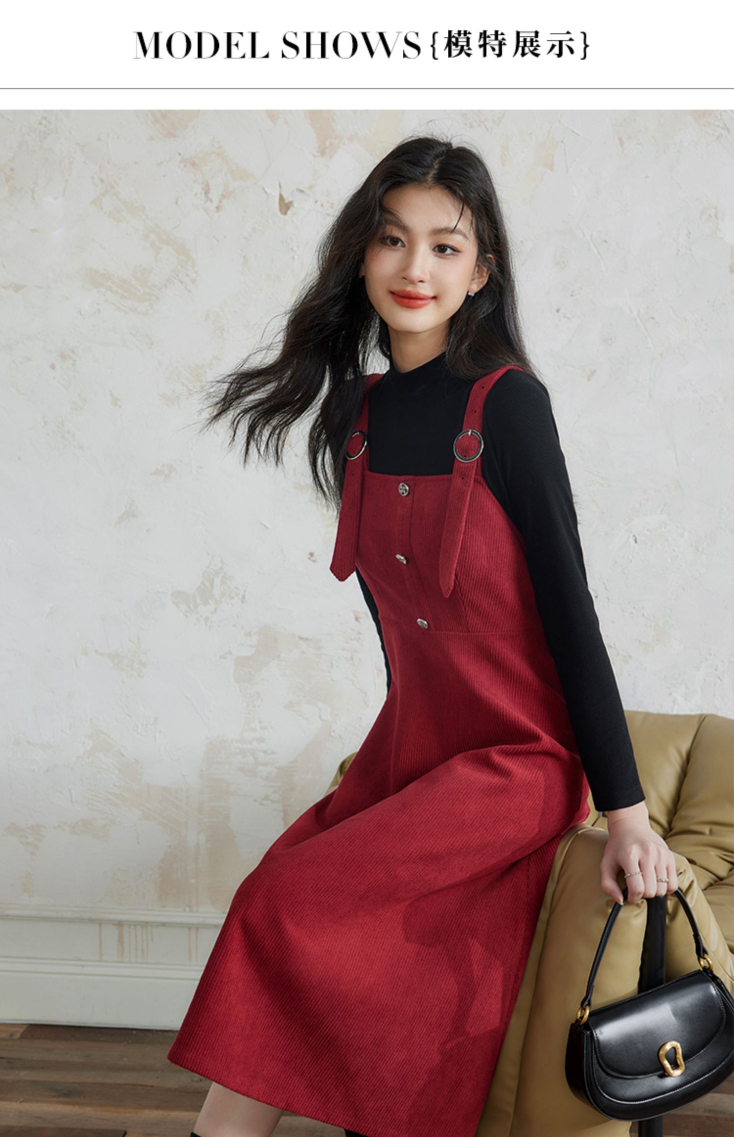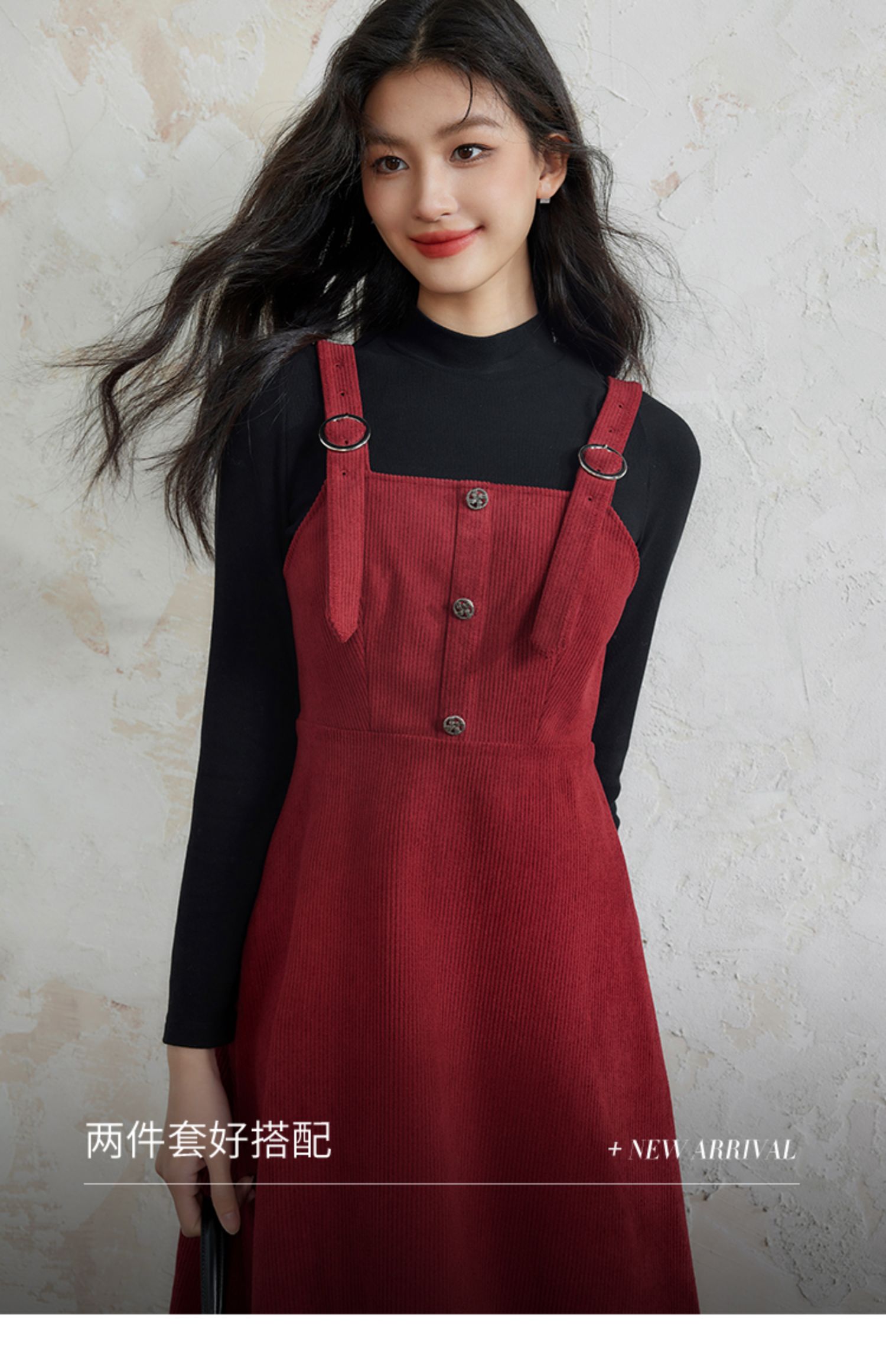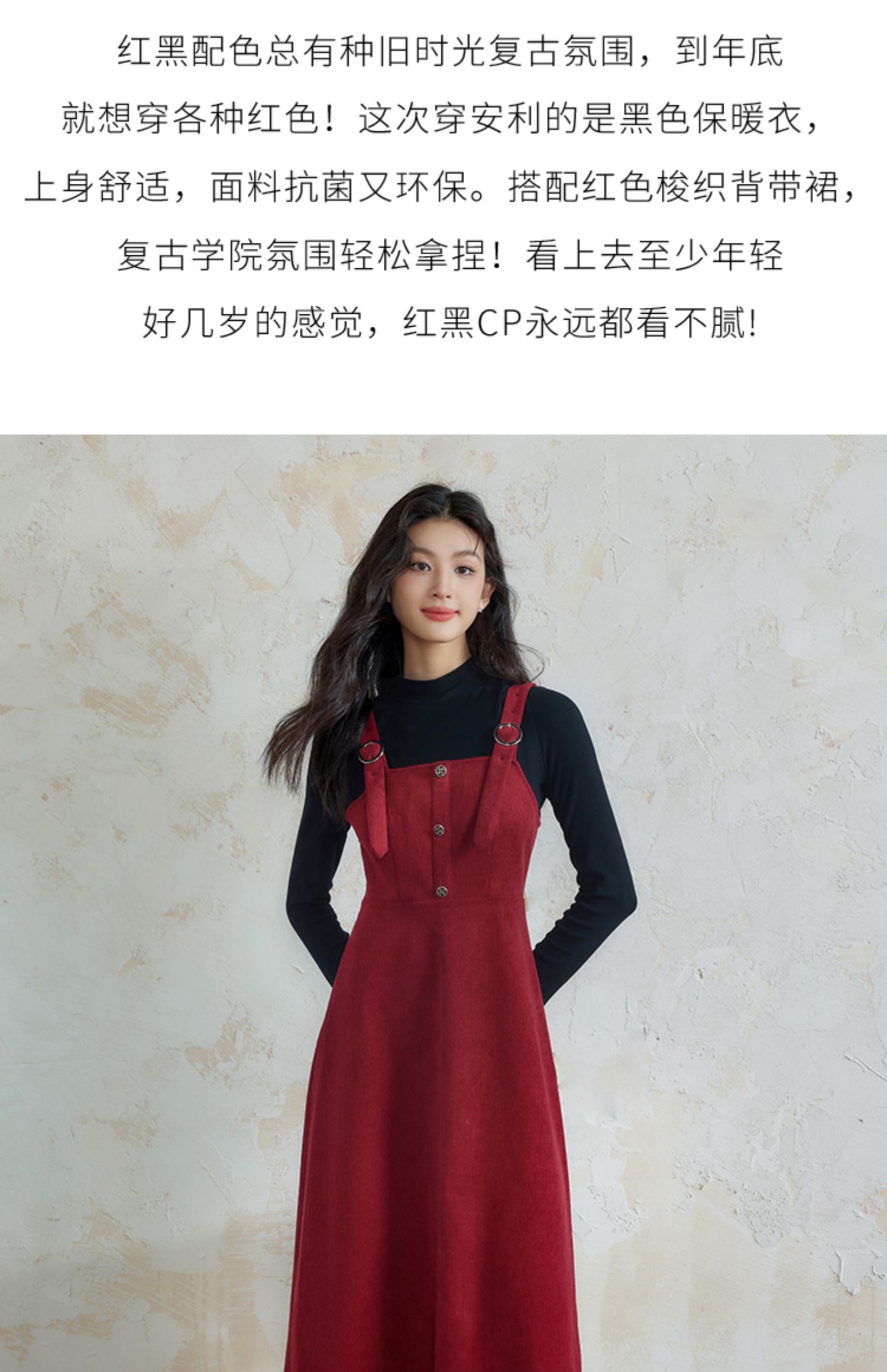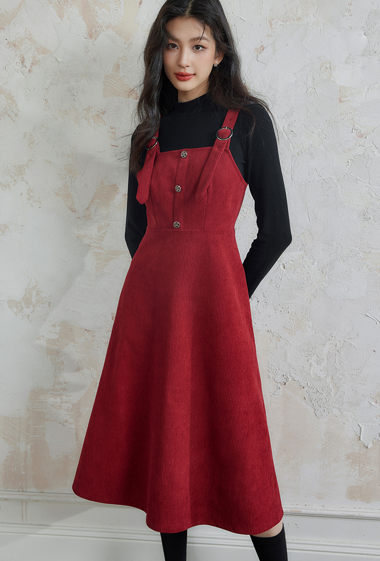 【断码清仓】熙世界学院风背带连衣裙套装女秋冬保暖衣裙子两件套