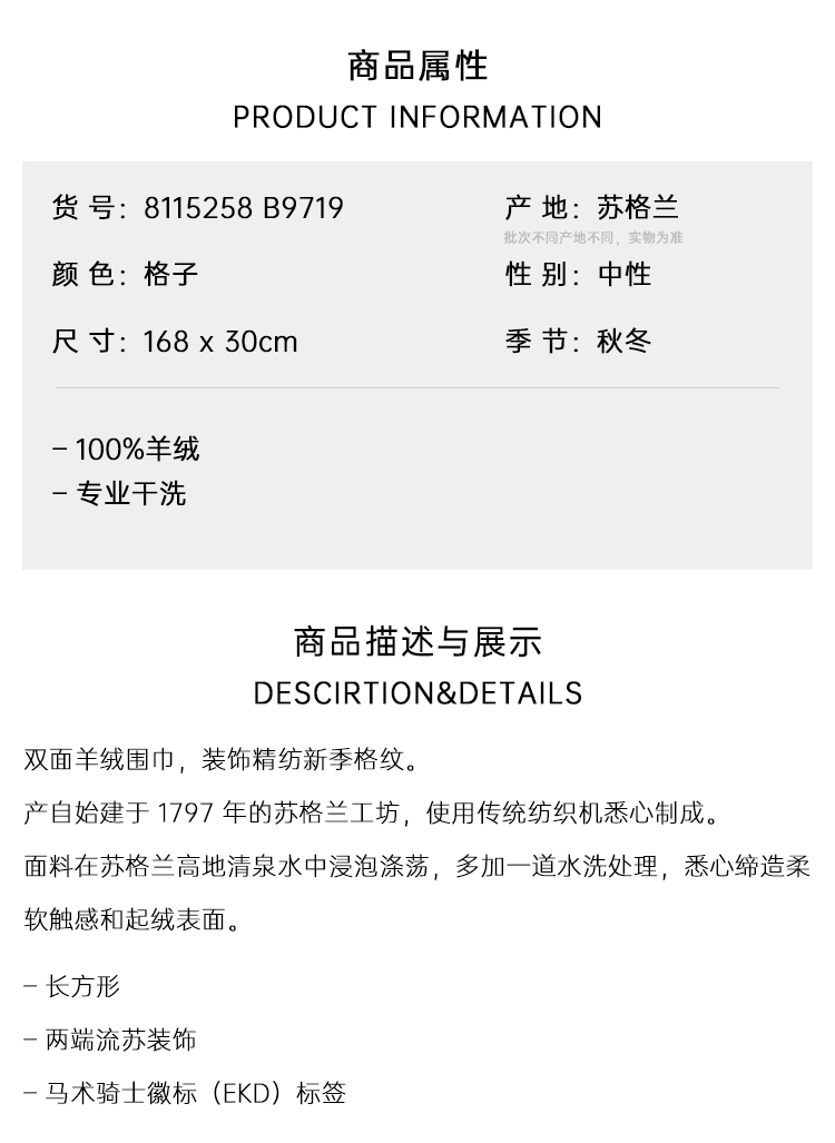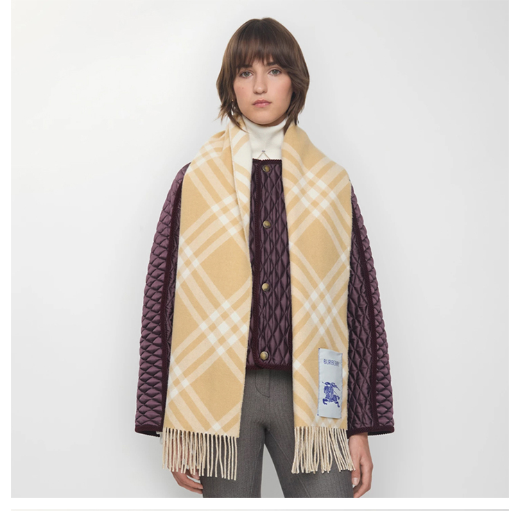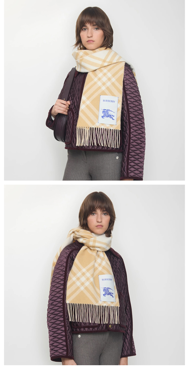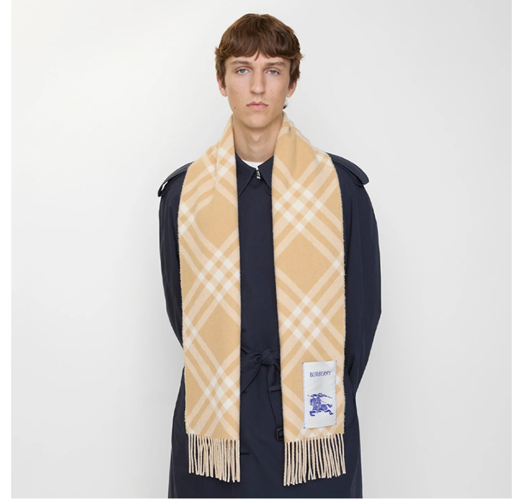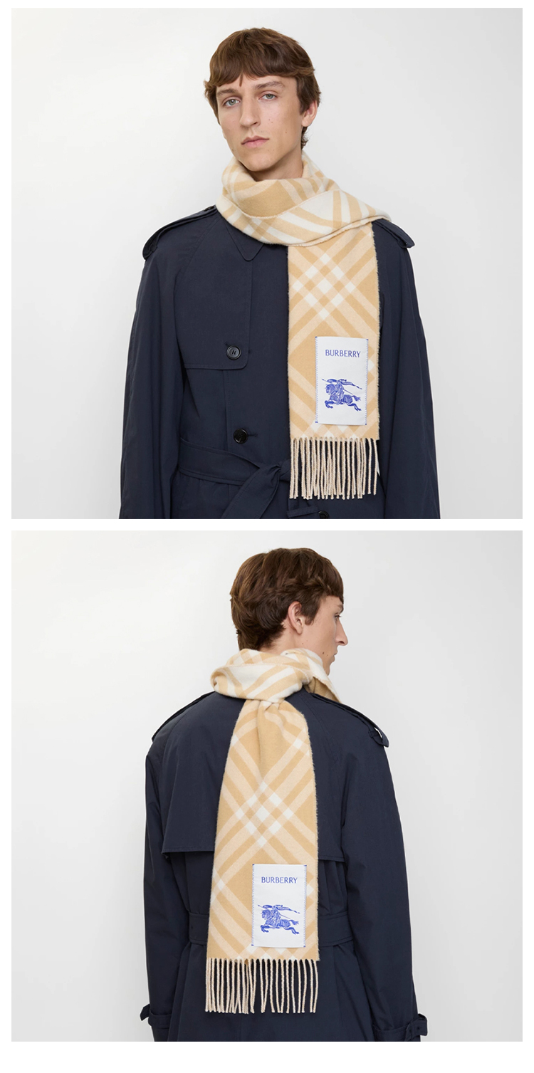 BURBERRY 巴宝莉 中性马术骑士徽标贴片格纹羊绒围巾 格子 8115258 B9719
