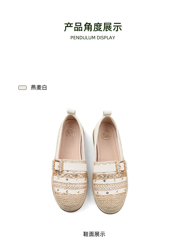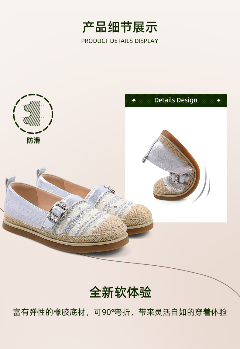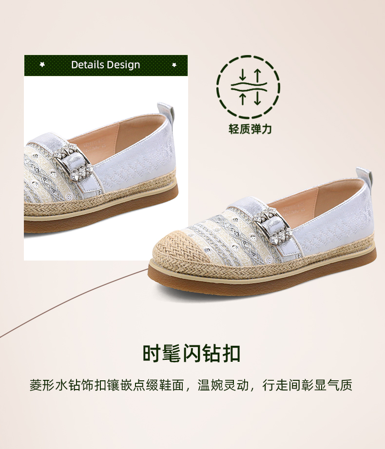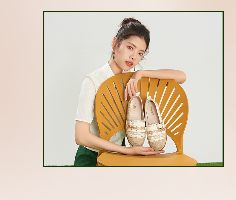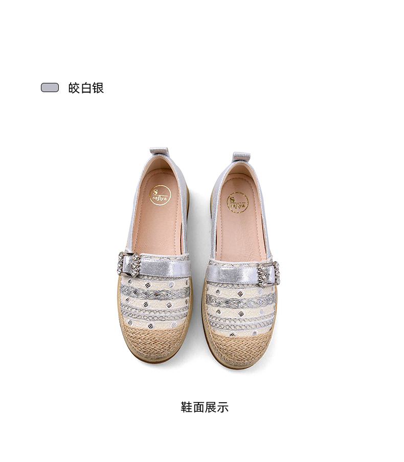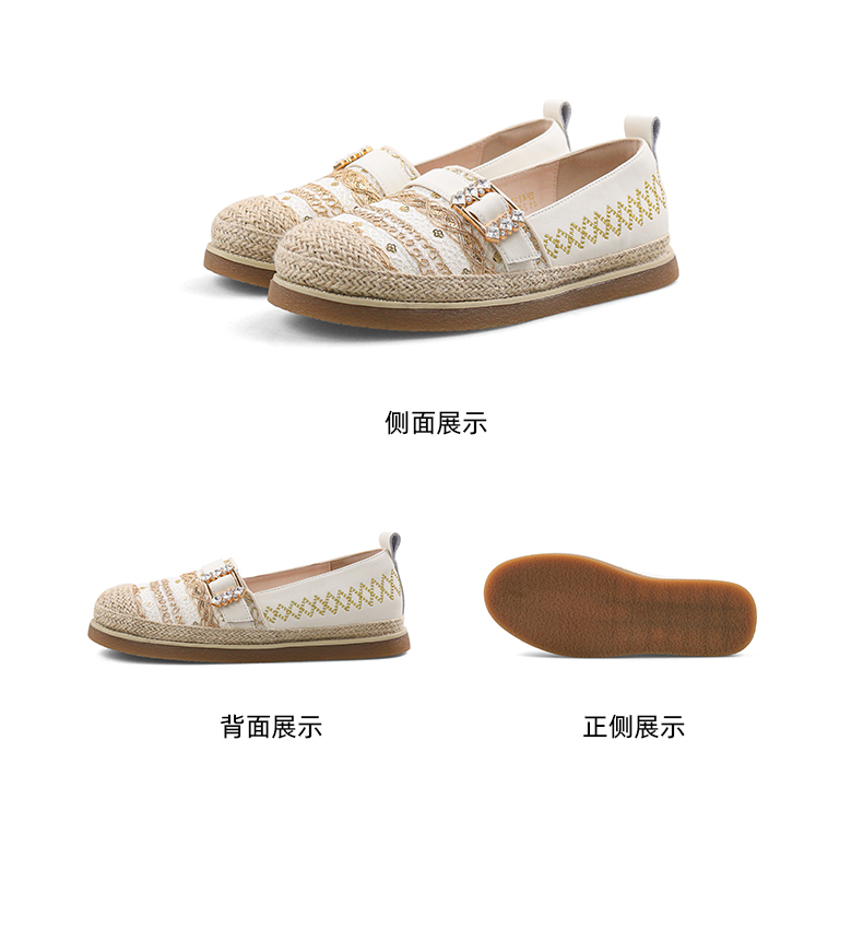 Safiya/索菲娅2024春国风编织钻扣浅口平底懒人一脚蹬渔夫鞋 SF41111432
