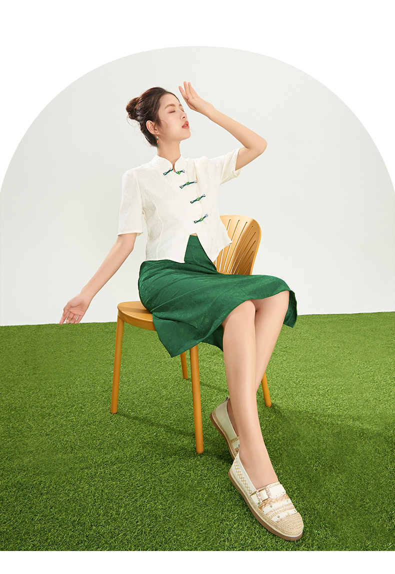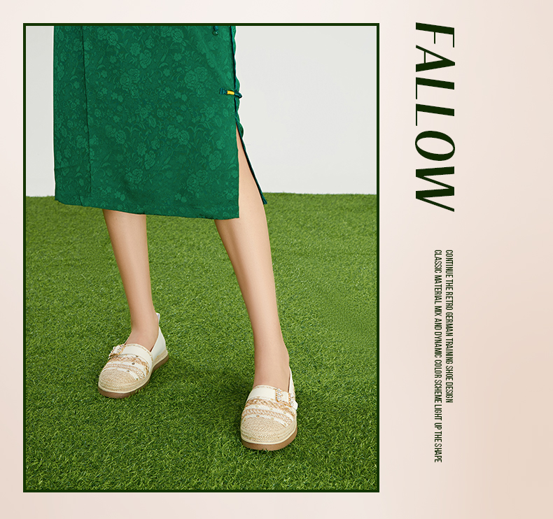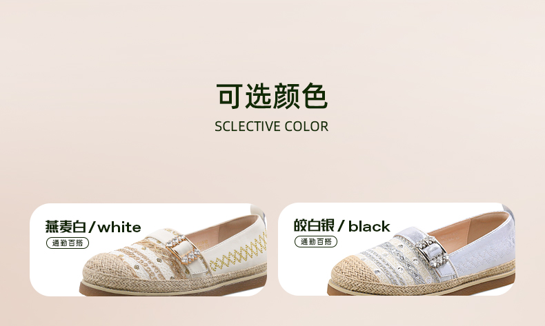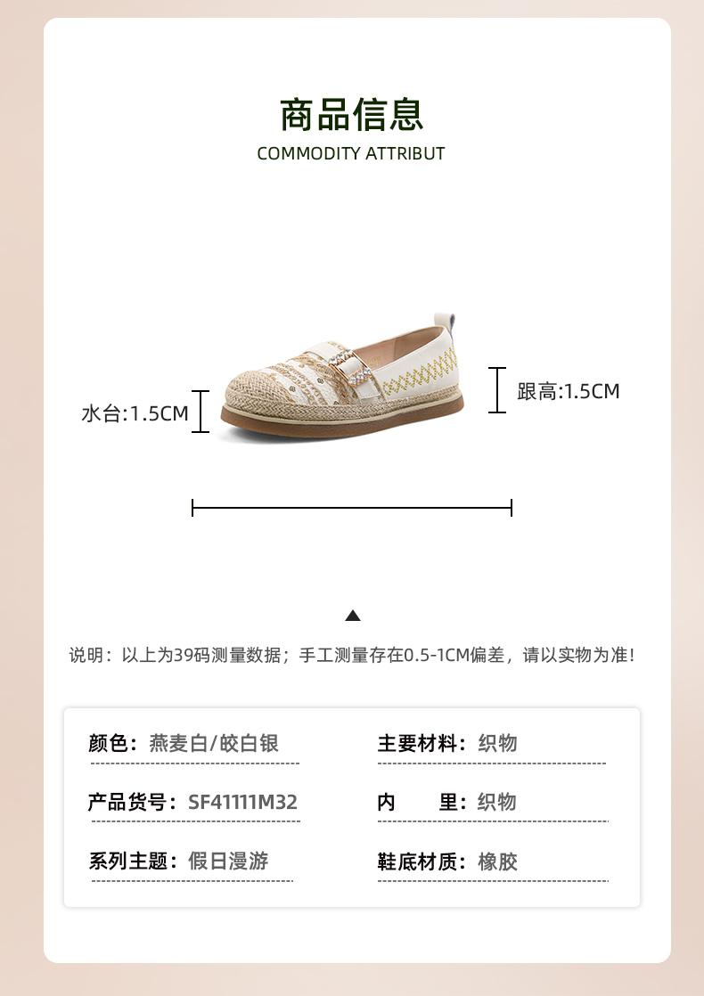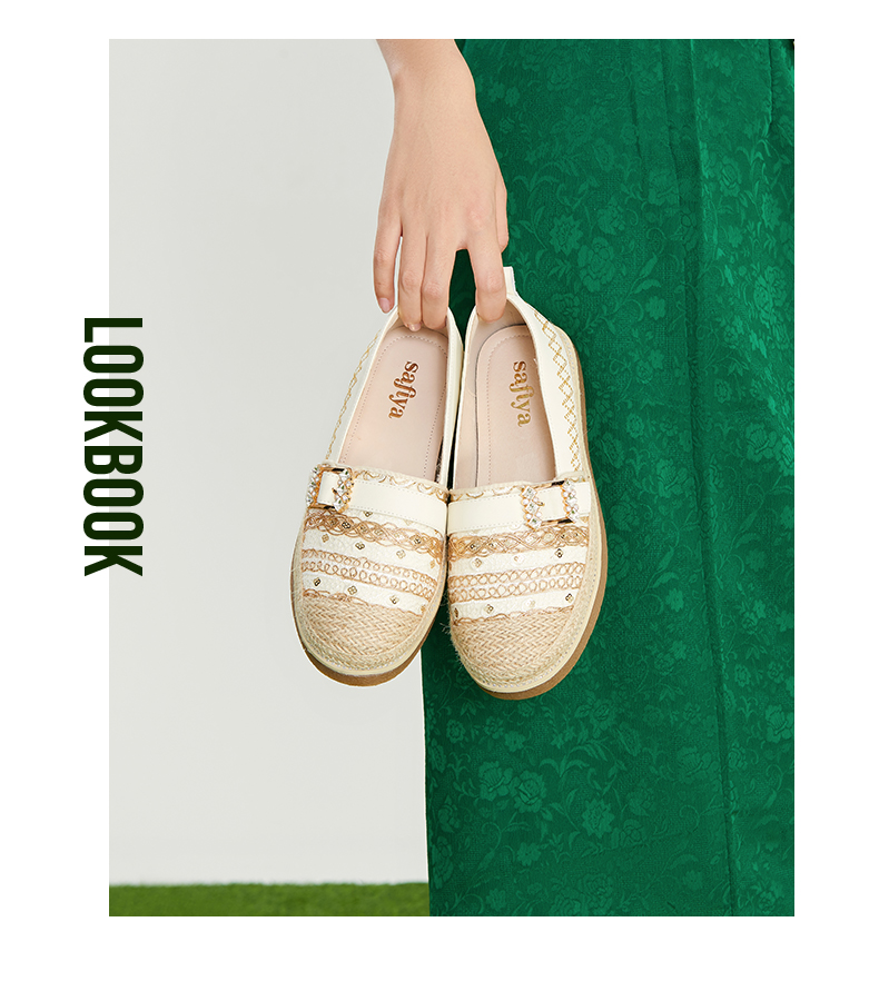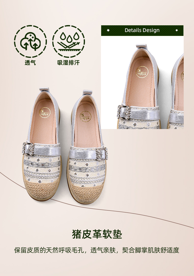 Safiya/索菲娅2024春国风编织钻扣浅口平底懒人一脚蹬渔夫鞋 SF41111432