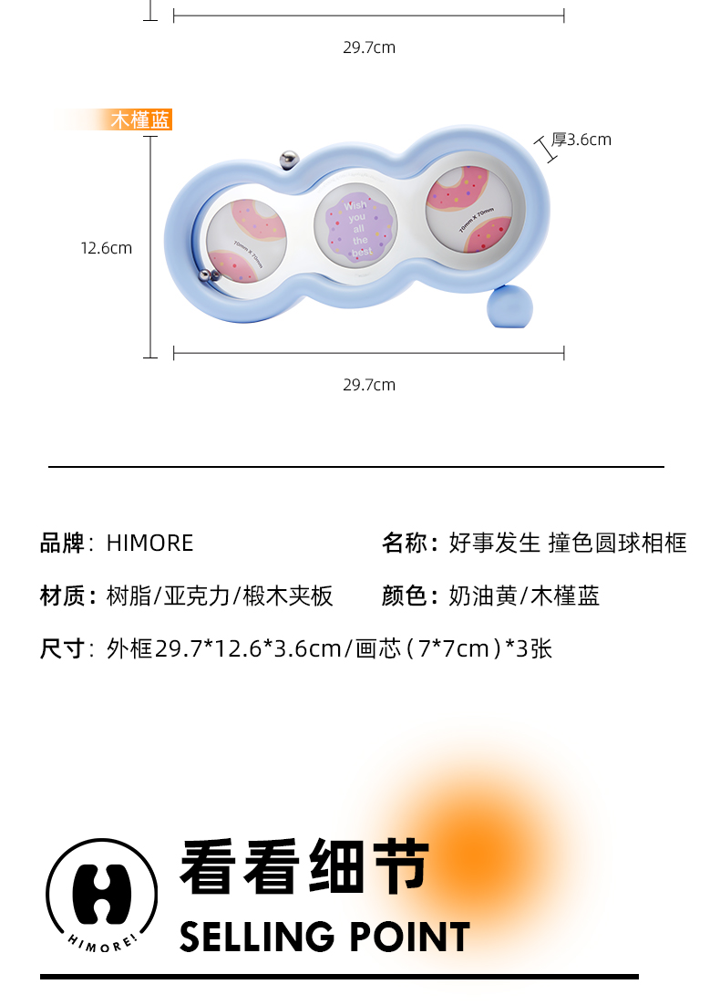 好事发生撞色圆球相框