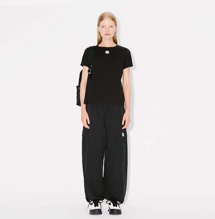 KENZO 高田贤三 女士博克花2.0”徽标刺绣棉质圆领短袖T恤 黑色 FF52 TS159 4SO 99J