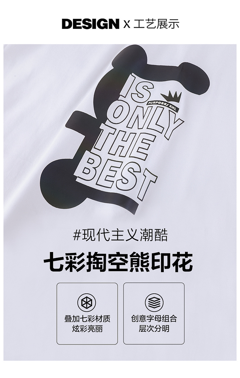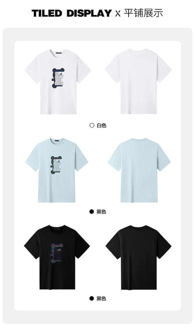 GXG男装【渐变字母】夏季时尚七彩熊反光印花男款圆领纯棉短袖t恤K&C