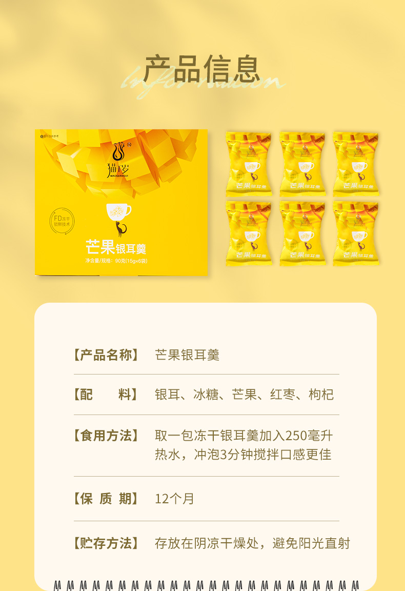 猫千岁冻干芒果银耳羹装冲泡即食零添加营养滋补饮品早餐速食汤