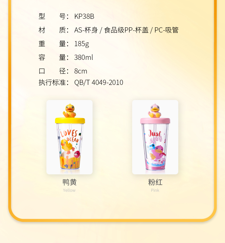 B.Duck小黄鸭精品四季小鸭公仔吸管杯380ml KP38B