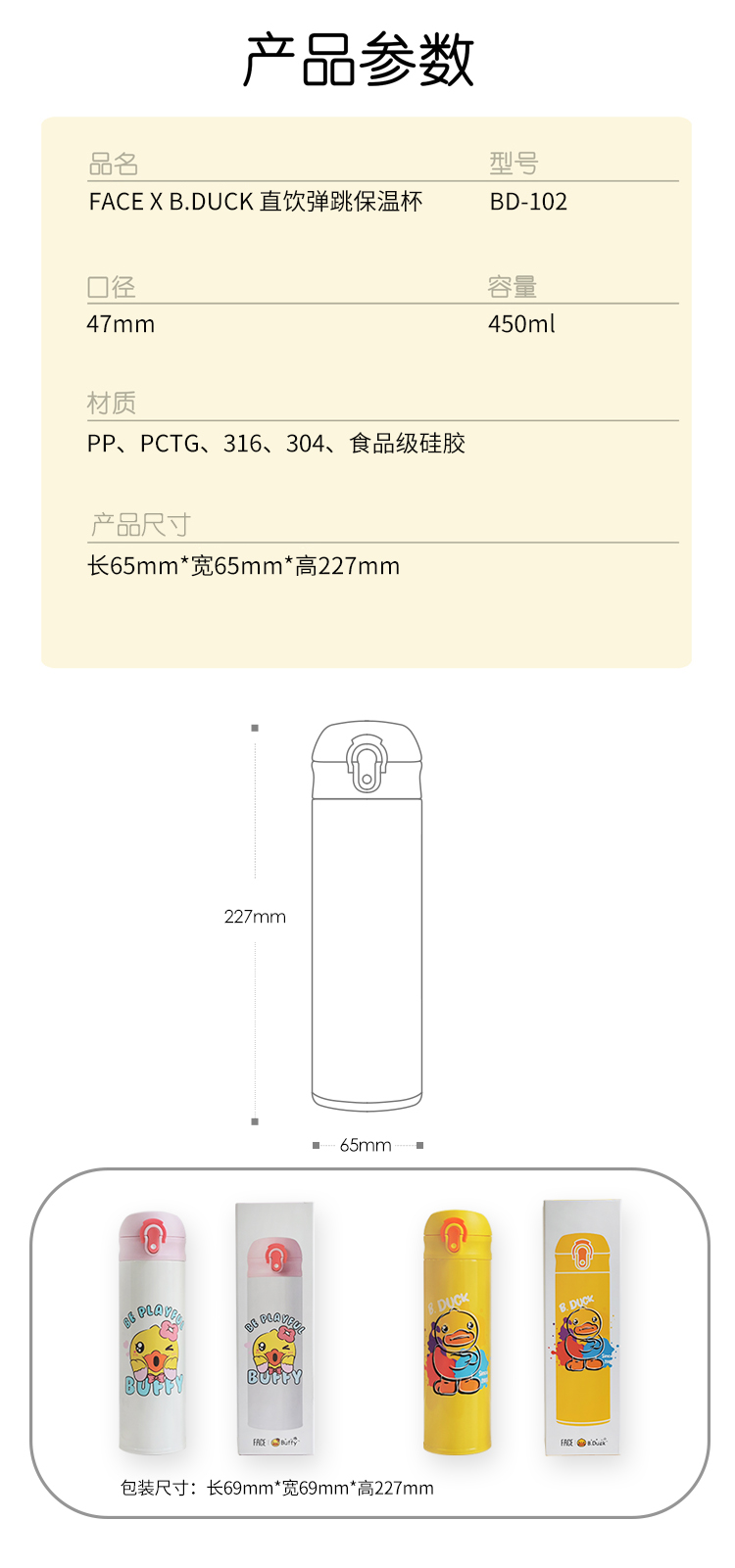 【专柜同款精品】B.DUCK弹跳316不锈钢保温杯450ml BD-102