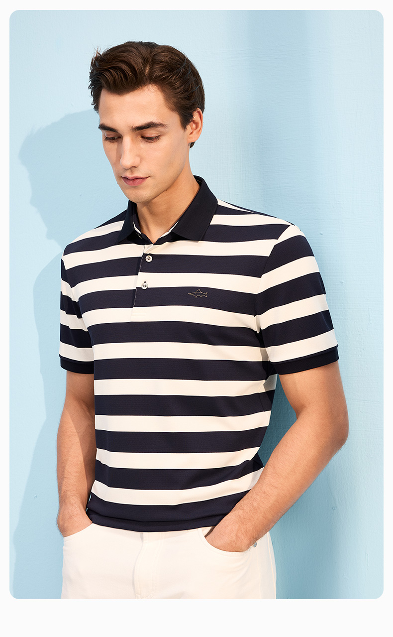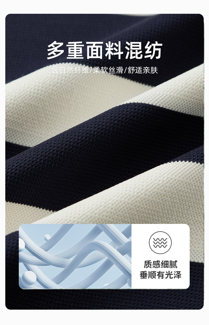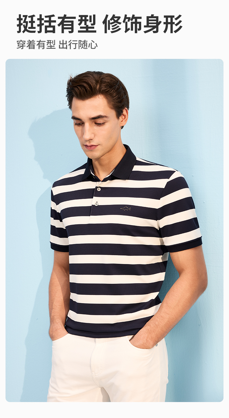【桑蚕丝】德鲨男装短袖条纹POLO衫2026夏新款撞色休闲翻领T恤男