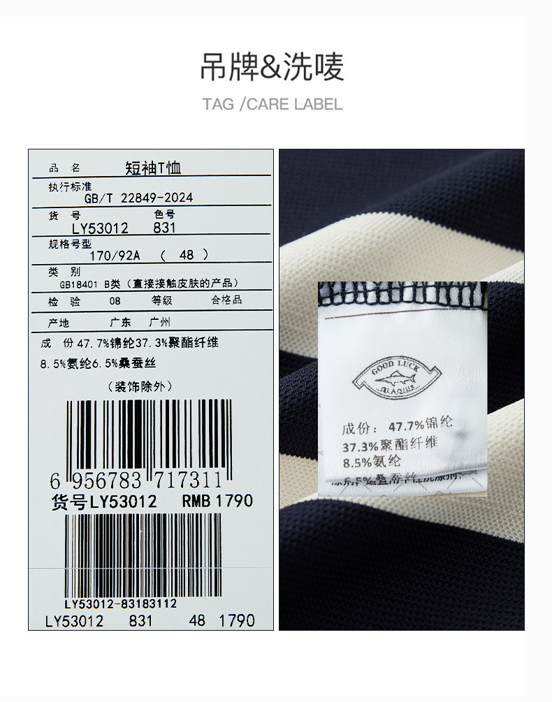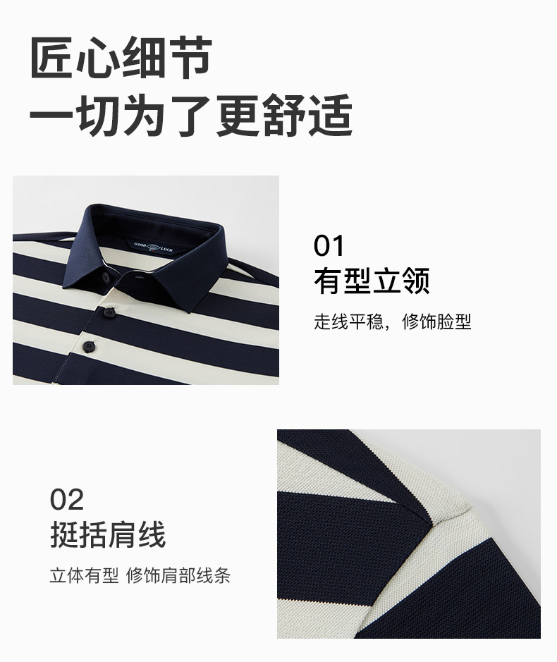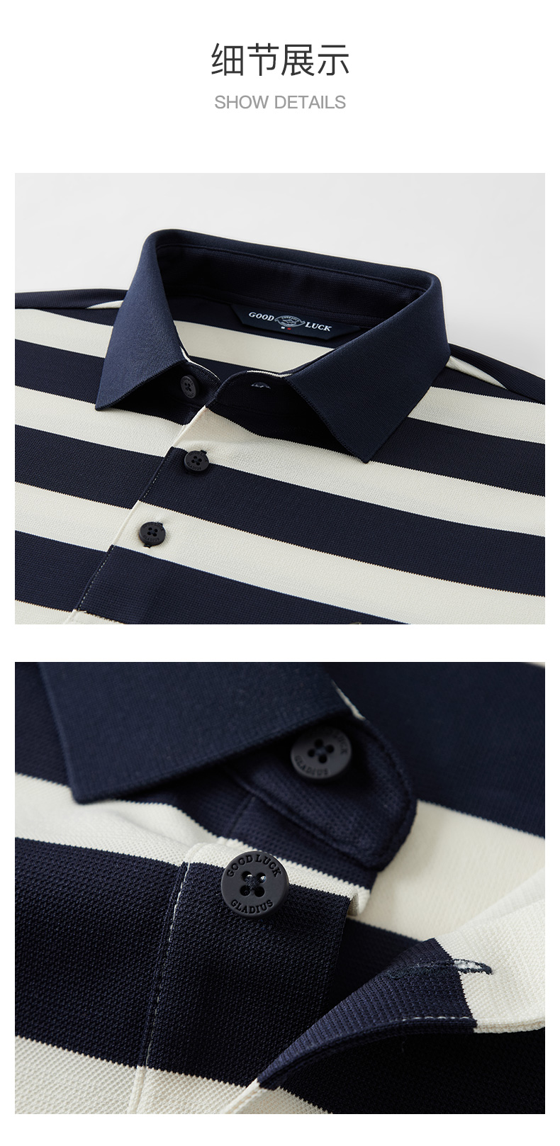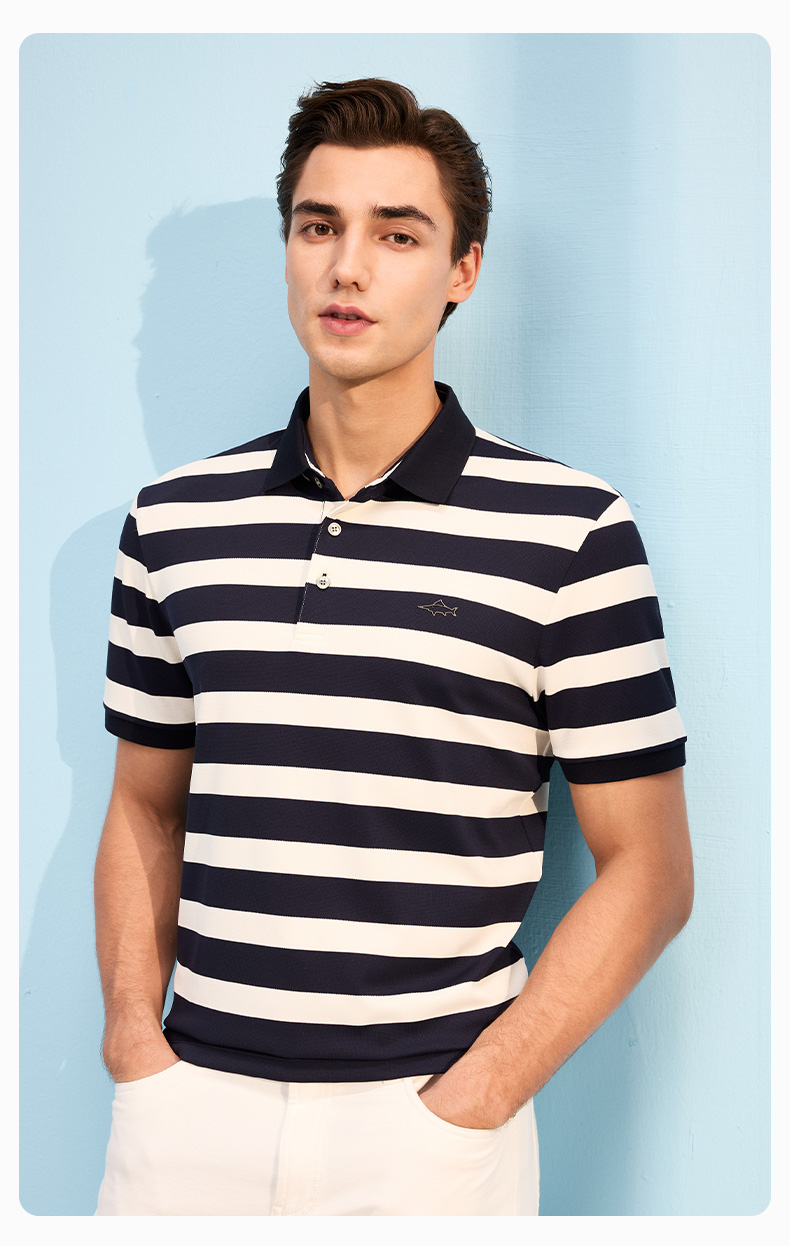 【桑蚕丝】德鲨男装短袖条纹POLO衫2026夏新款撞色休闲翻领T恤男