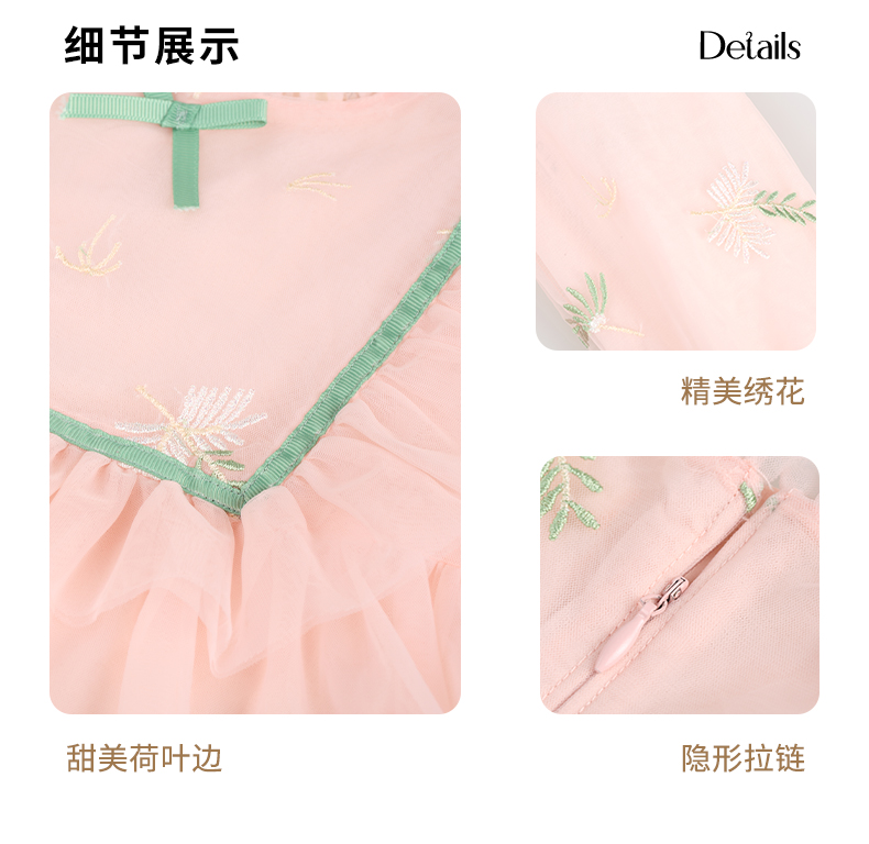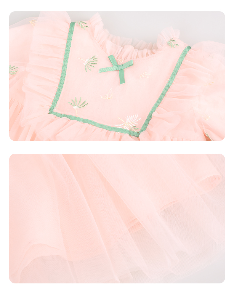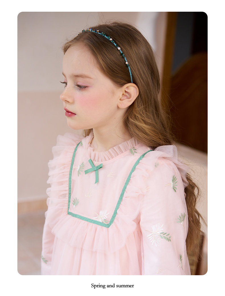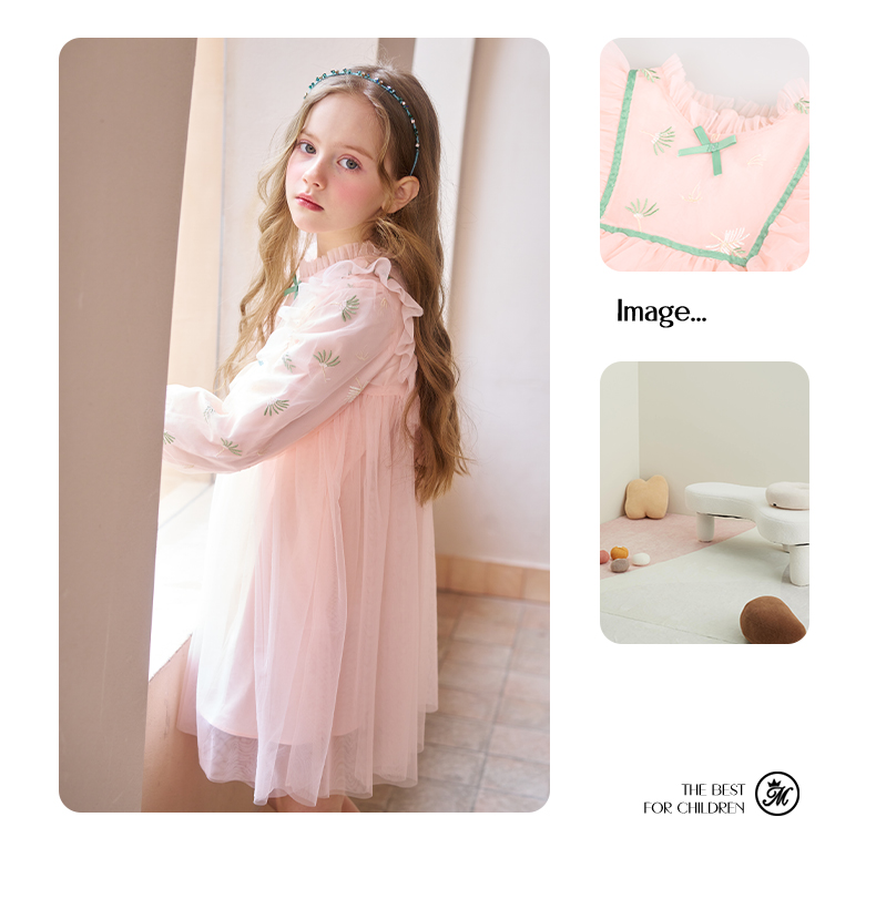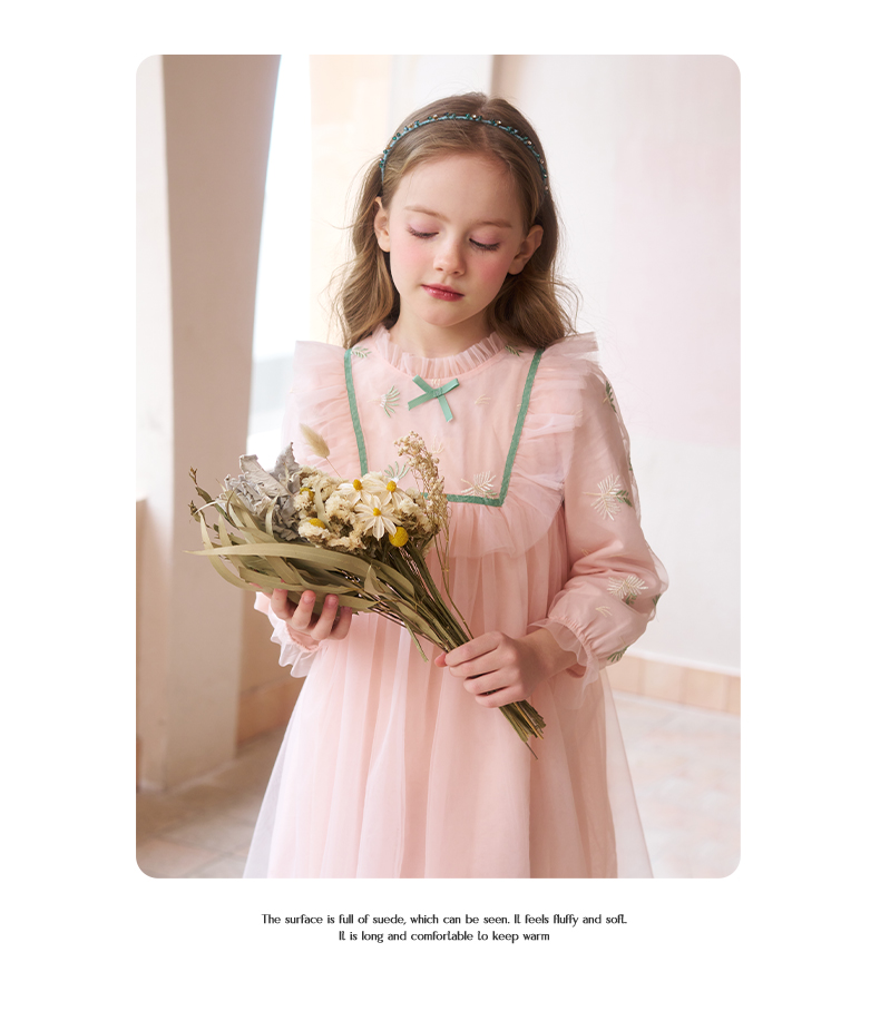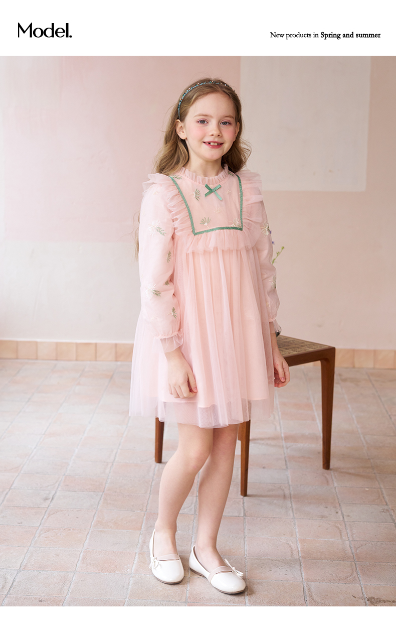 mettekids女童连衣裙春秋新款儿童粉色裙子中大童网纱公主裙童装