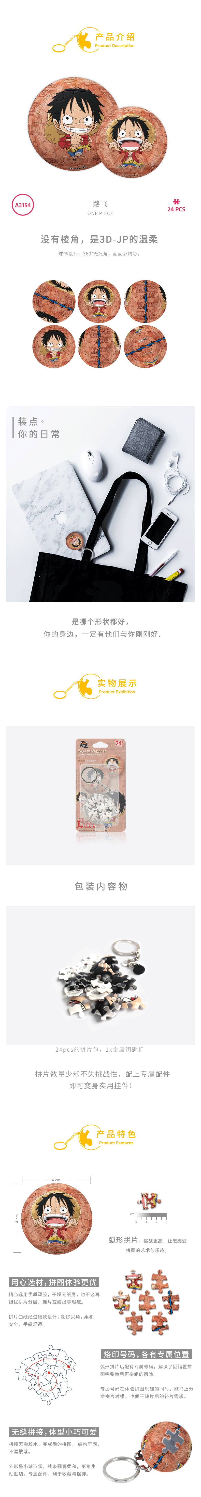 24片 钥匙扣拼图 塑料拼图 A3154 ONE PIECE-路飞