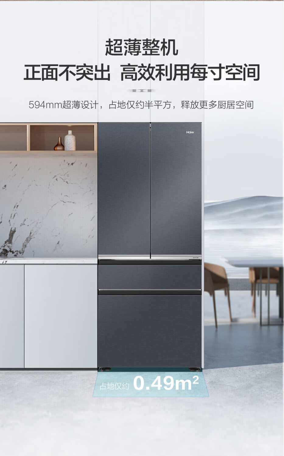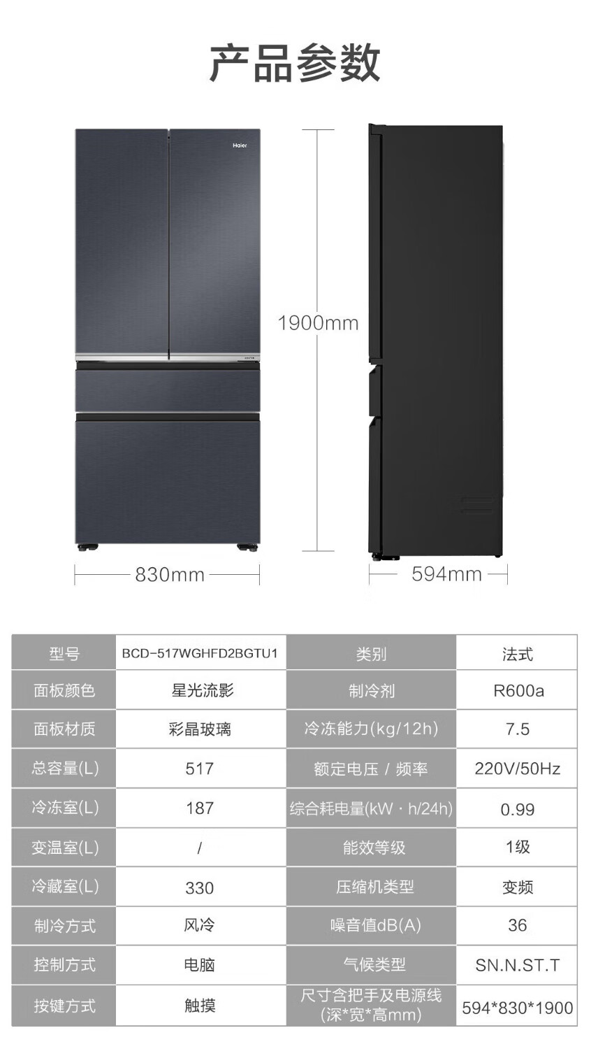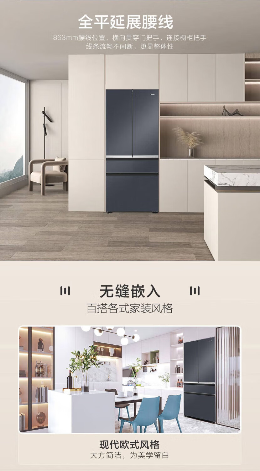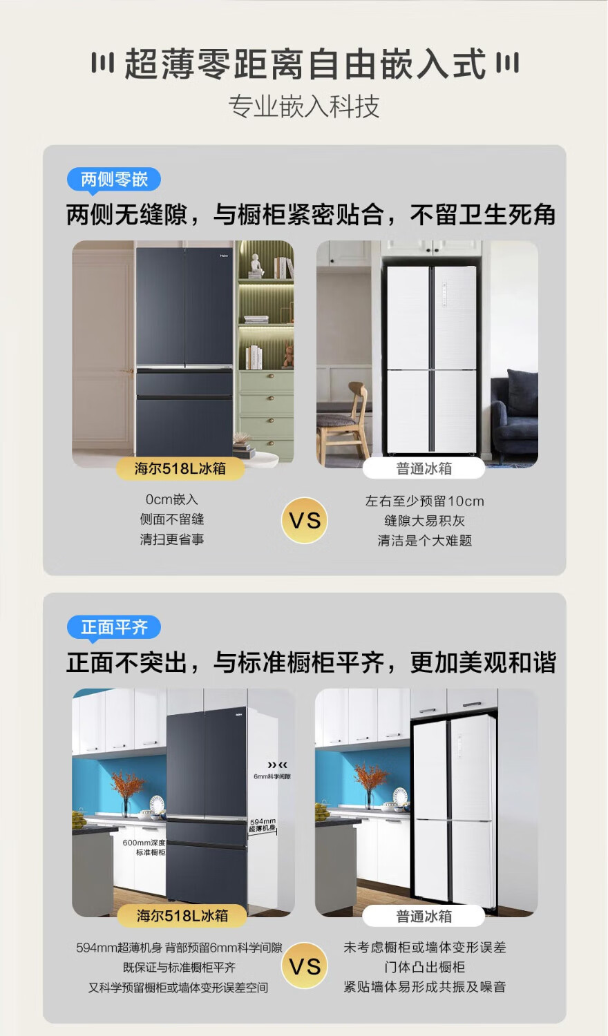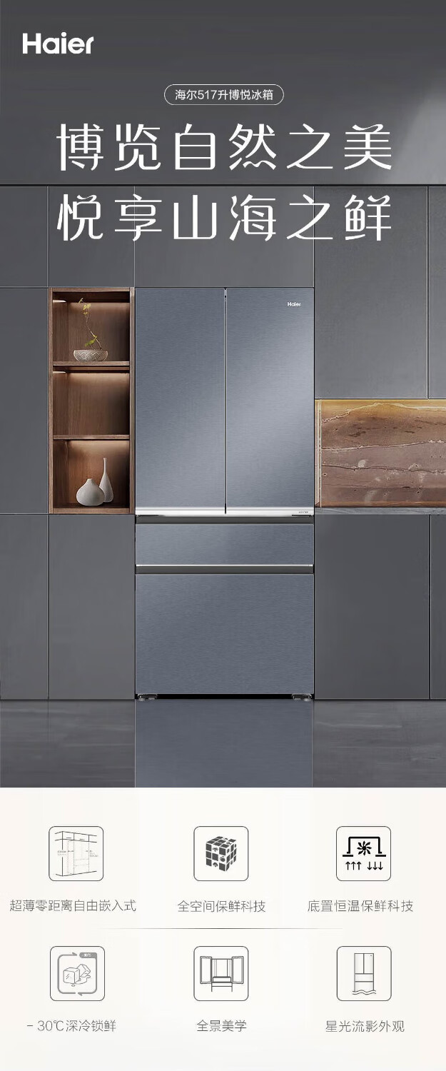 海尔冰箱518升新款法式多开门零距离嵌入式全空间保鲜风冷无霜双变频 【518升】BCD-518WGHFD2BGNU1 60cm超薄嵌入