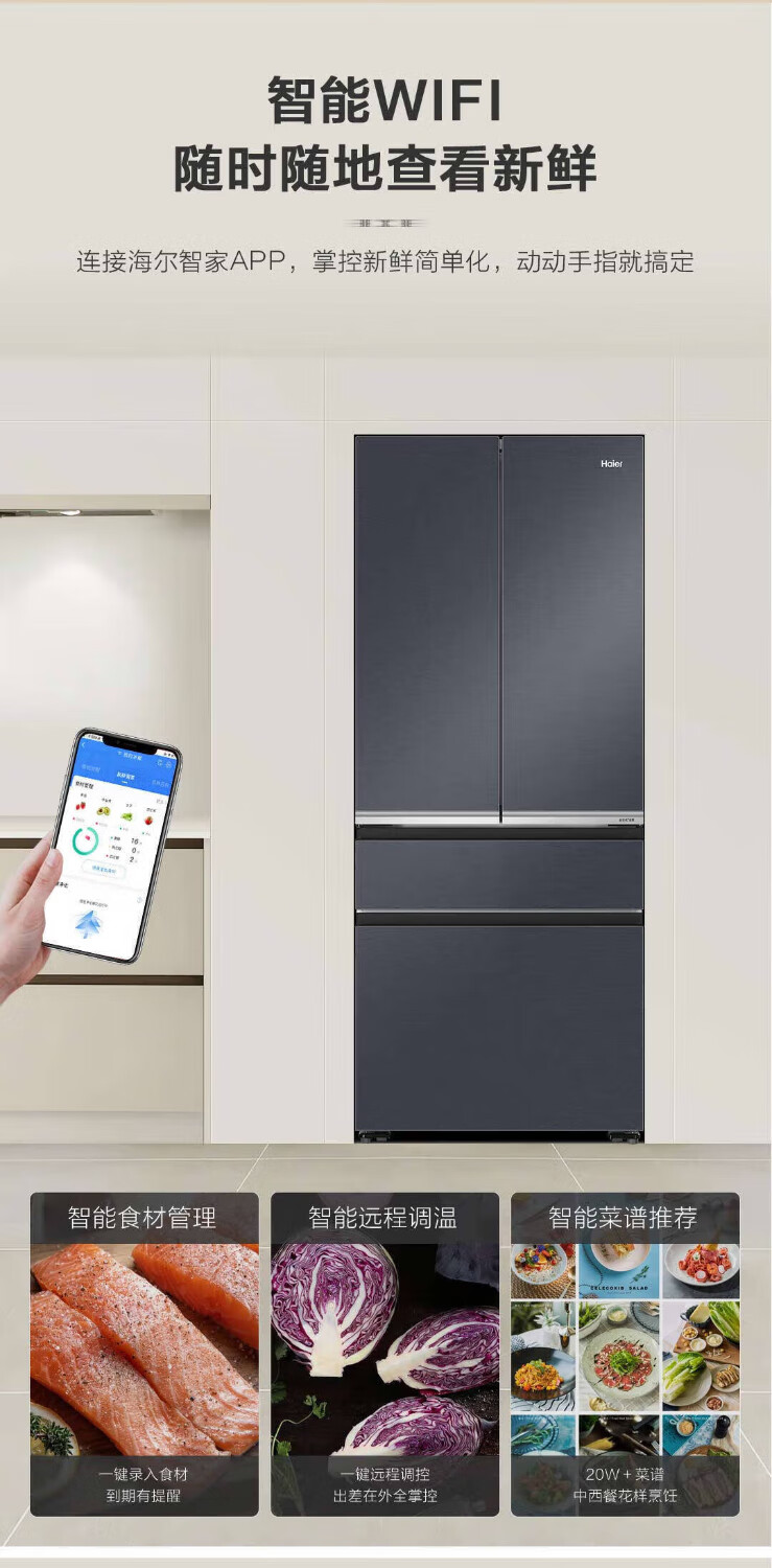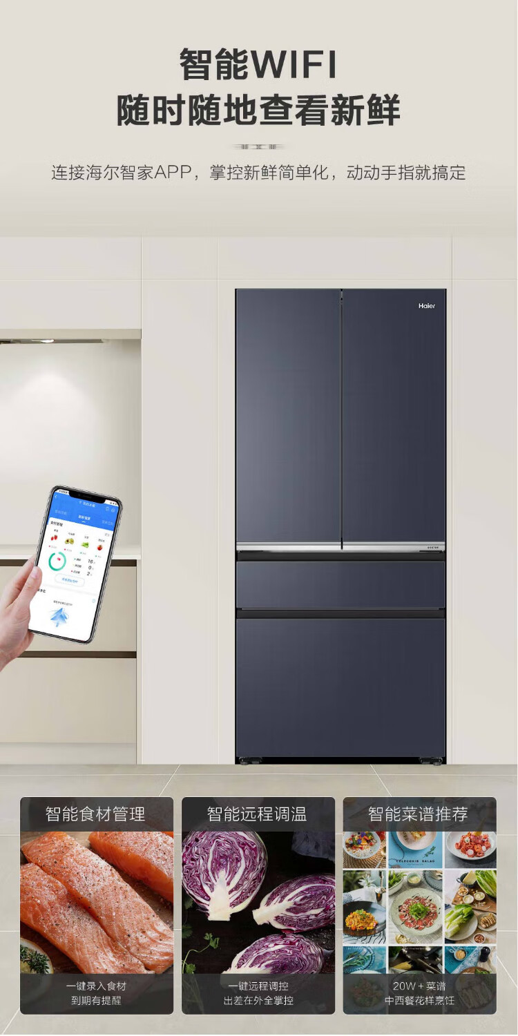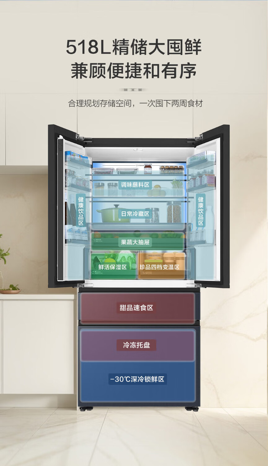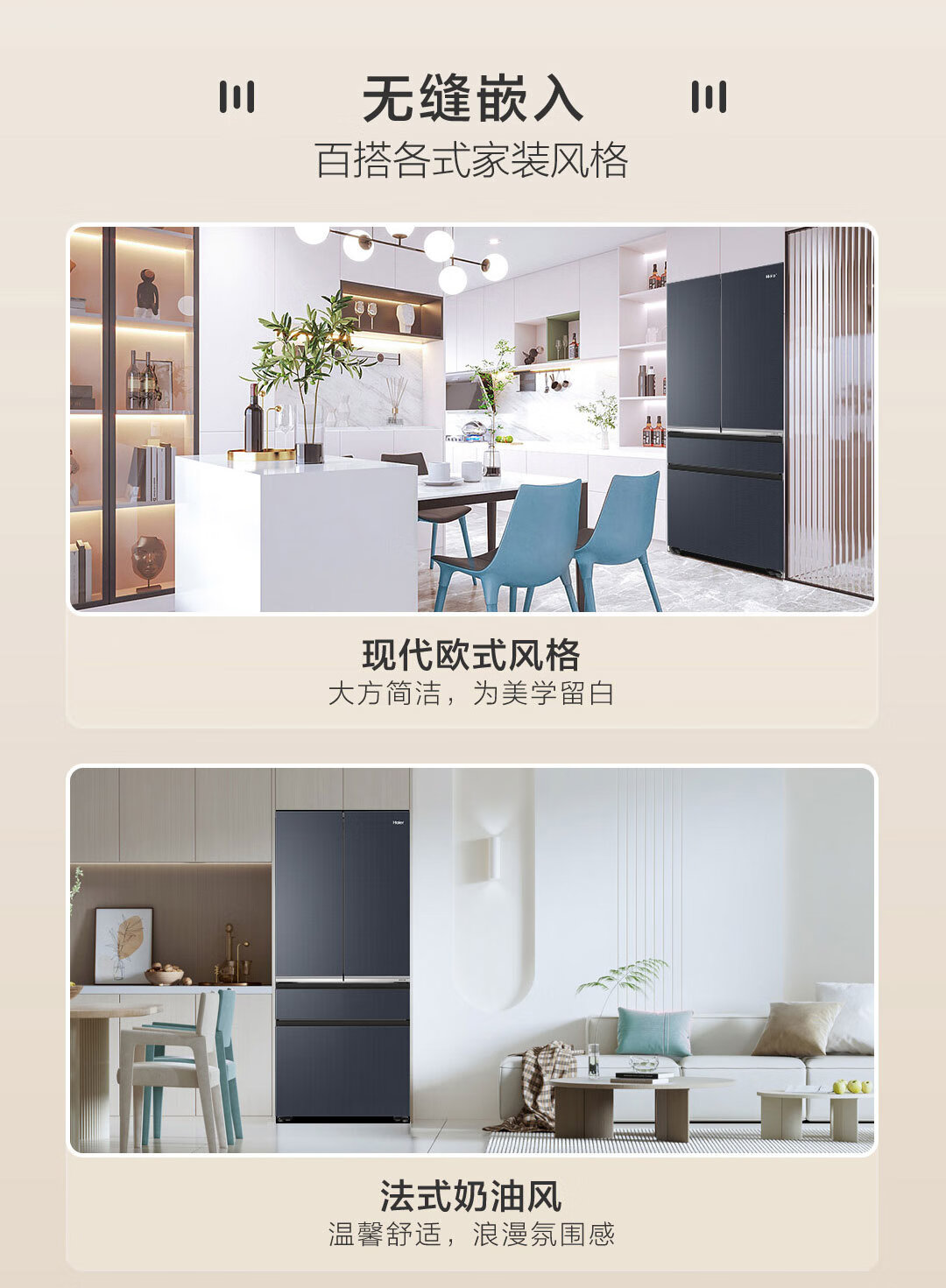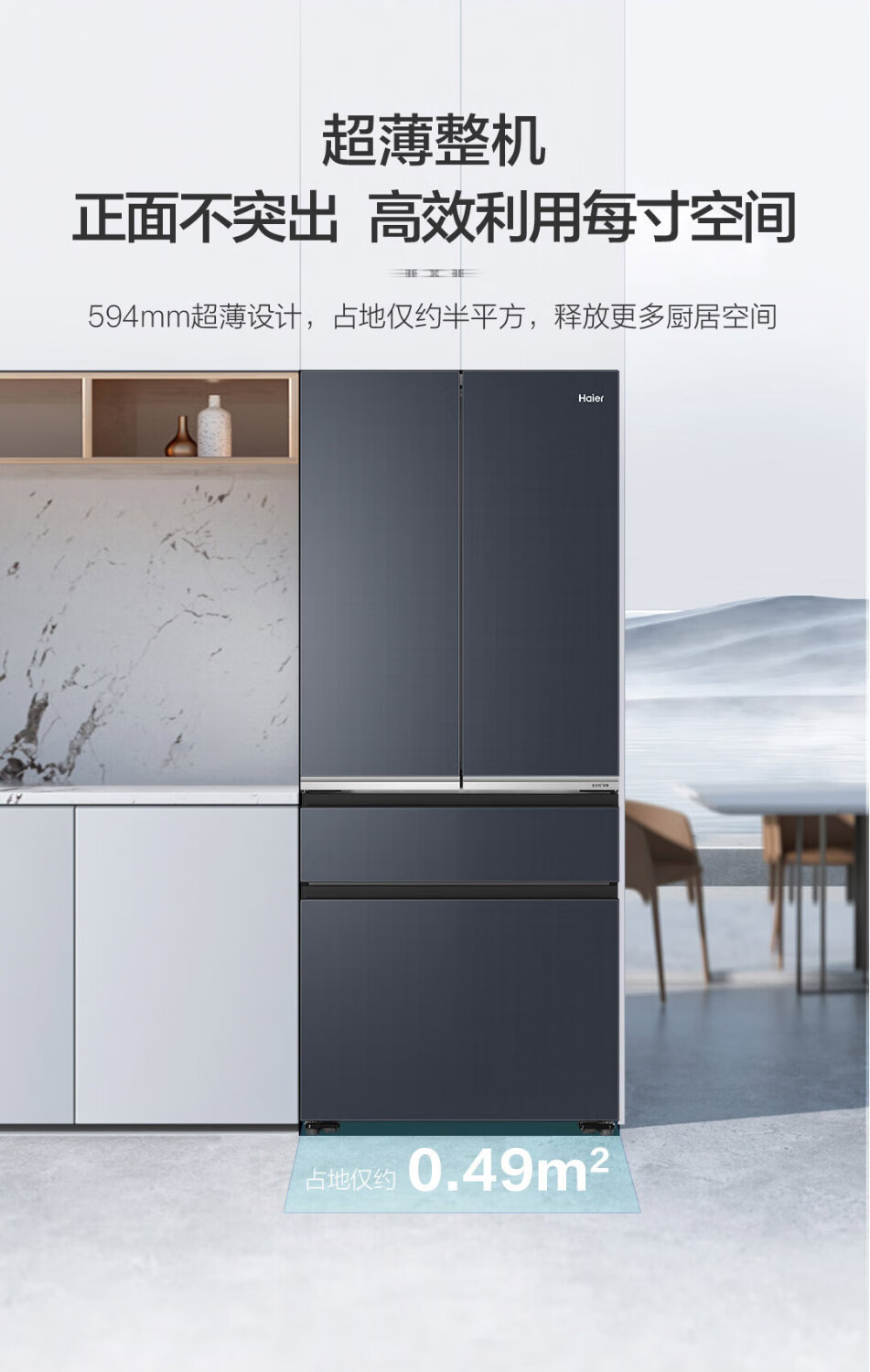 海尔冰箱518升新款法式多开门零距离嵌入式全空间保鲜风冷无霜双变频 【518升】BCD-518WGHFD2BGNU1 60cm超薄嵌入