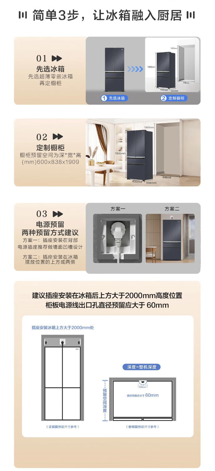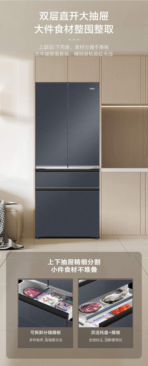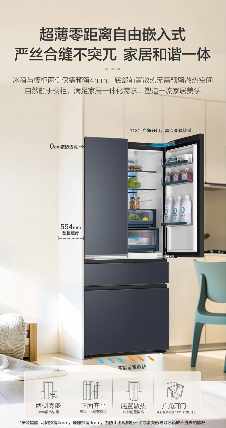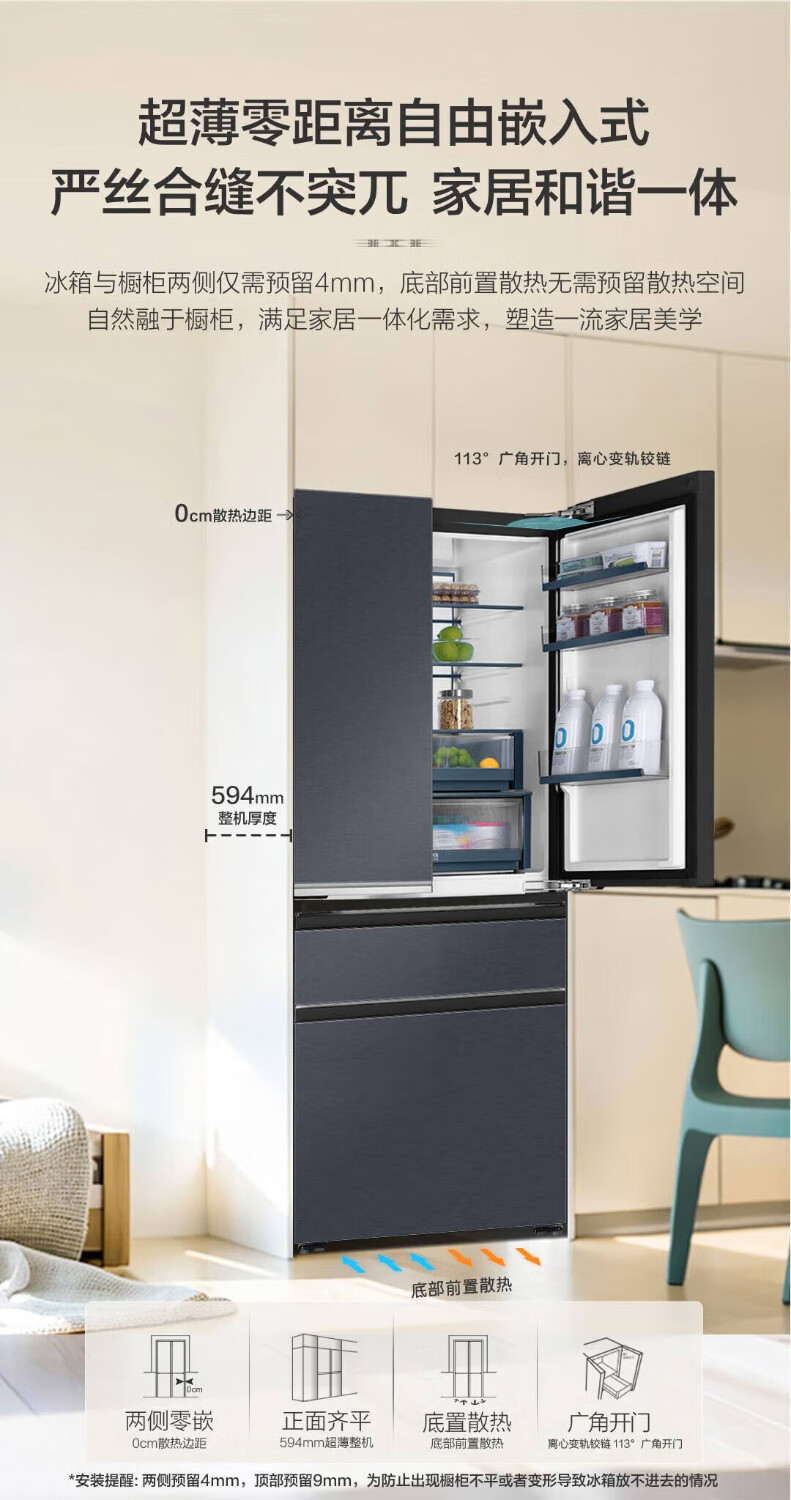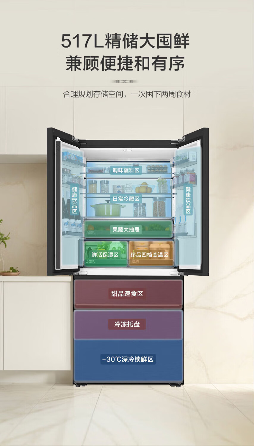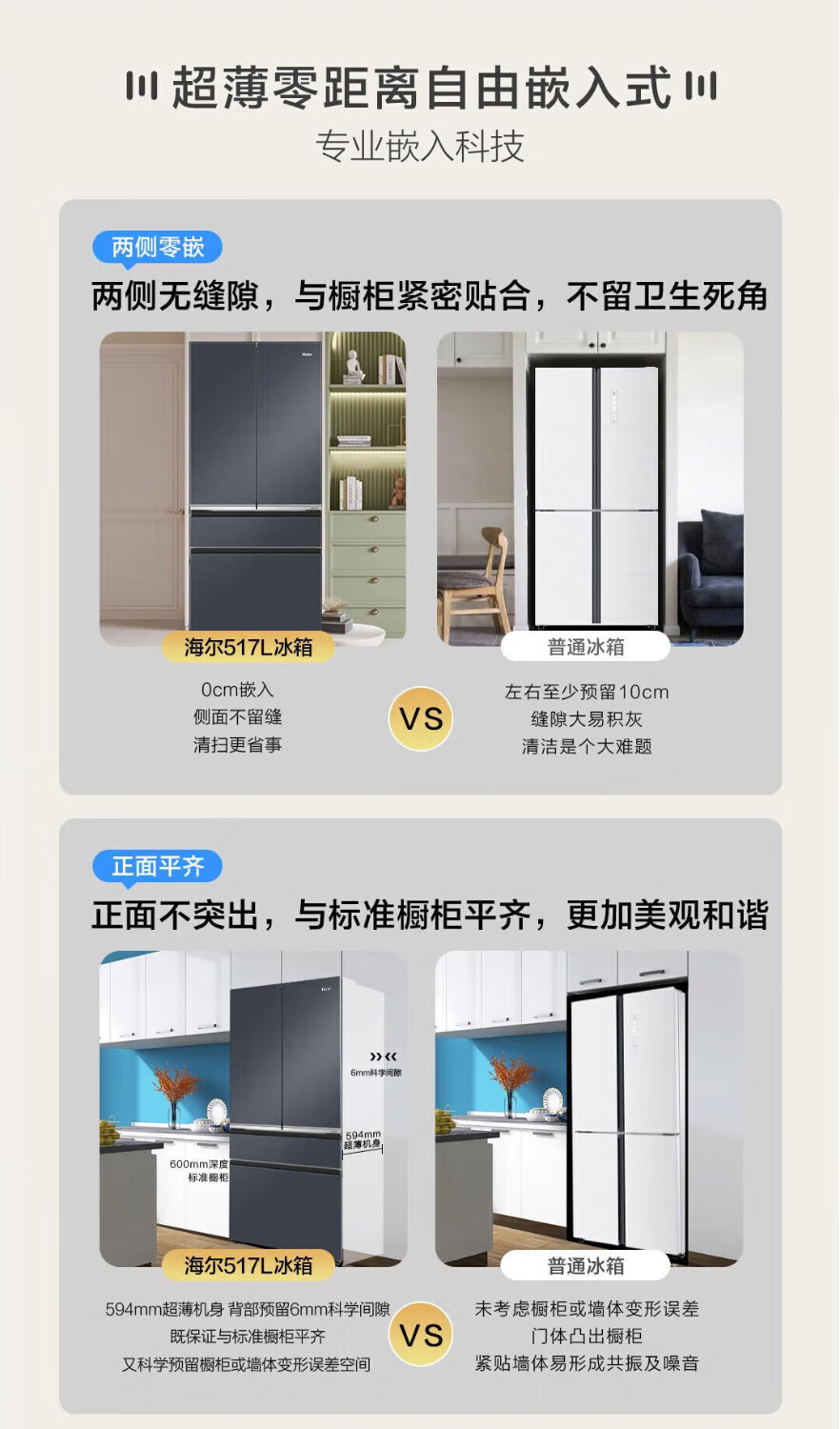 海尔冰箱518升新款法式多开门零距离嵌入式全空间保鲜风冷无霜双变频 【518升】BCD-518WGHFD2BGNU1 60cm超薄嵌入
