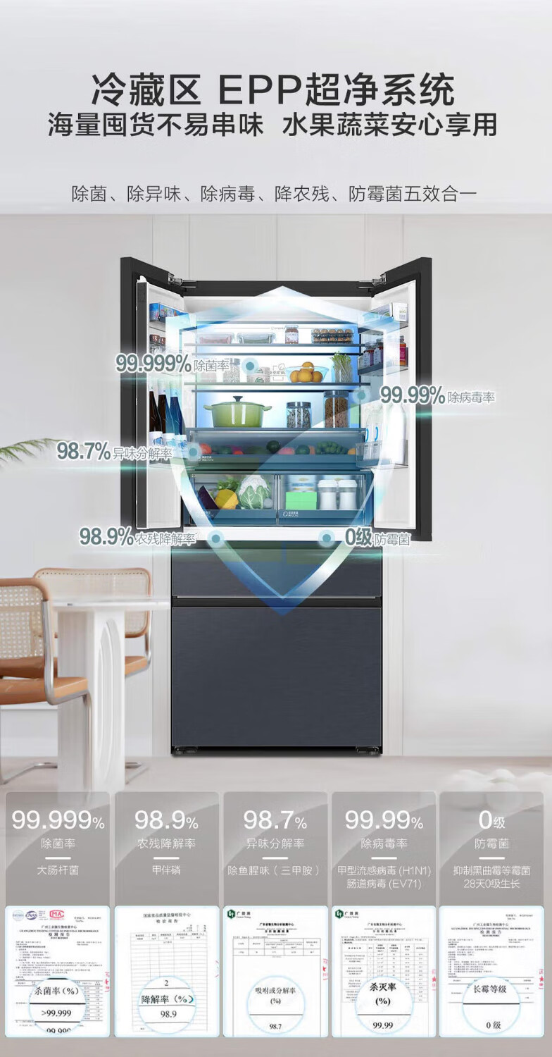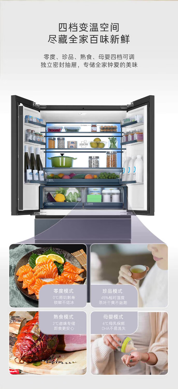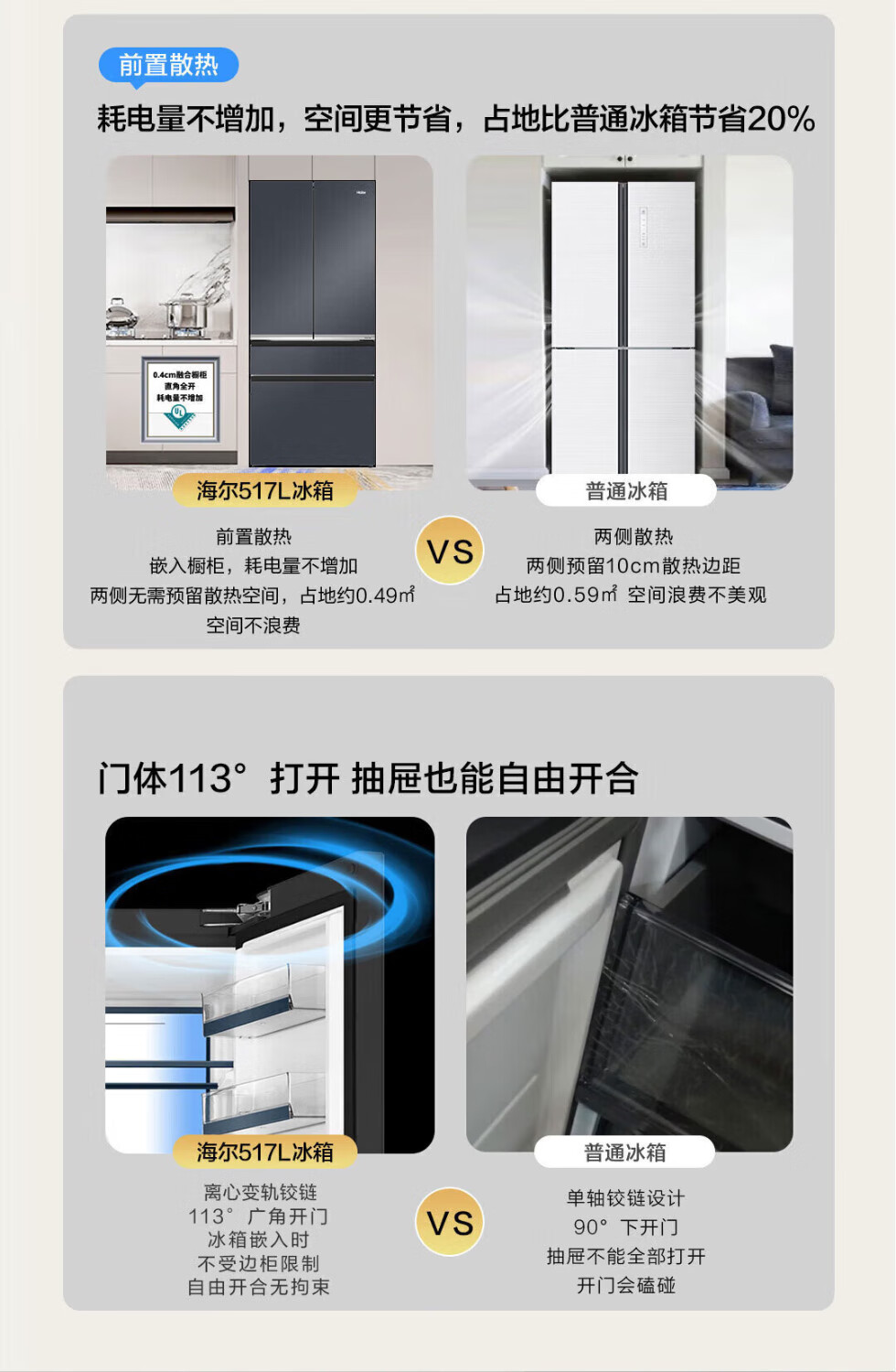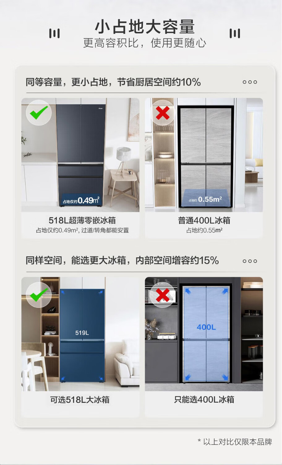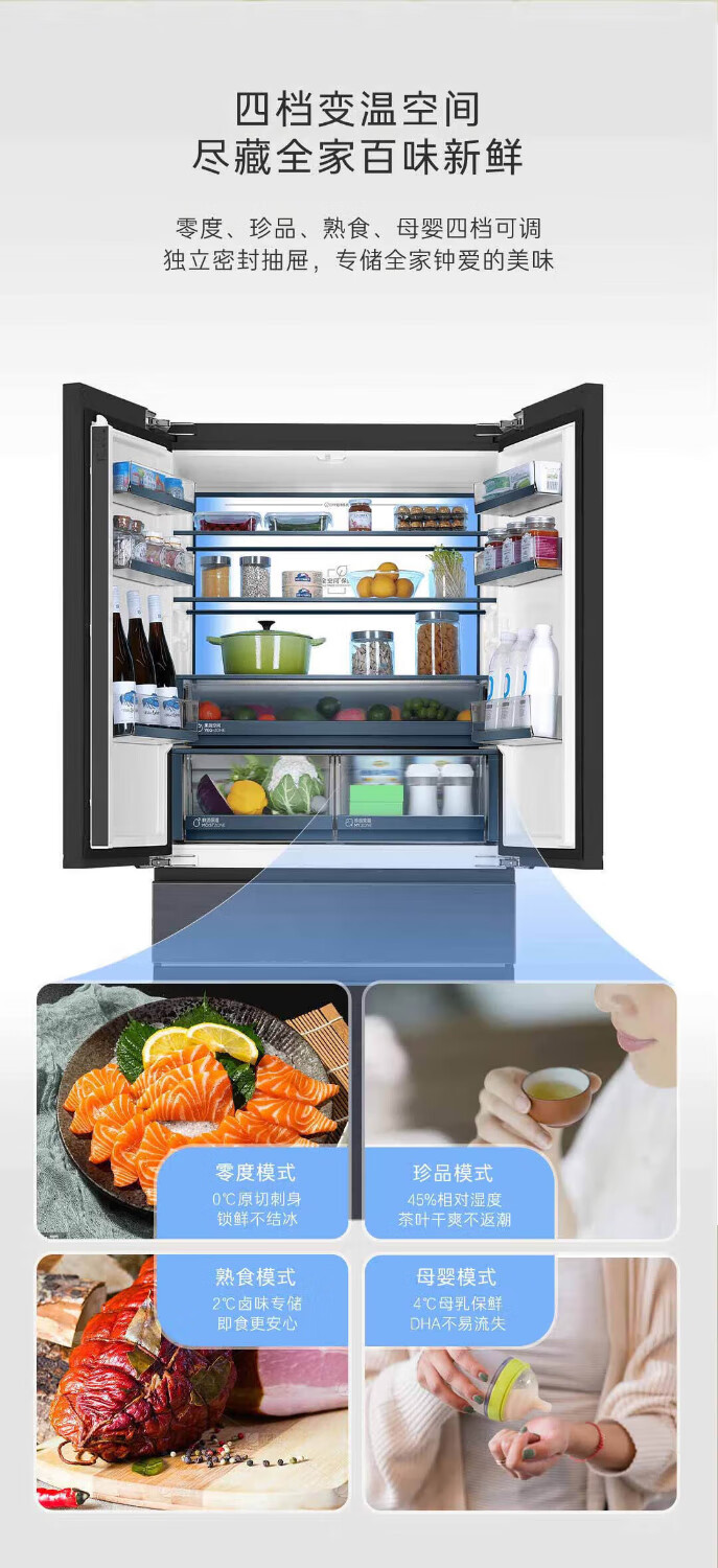 海尔冰箱518升新款法式多开门零距离嵌入式全空间保鲜风冷无霜双变频 【518升】BCD-518WGHFD2BGNU1 60cm超薄嵌入