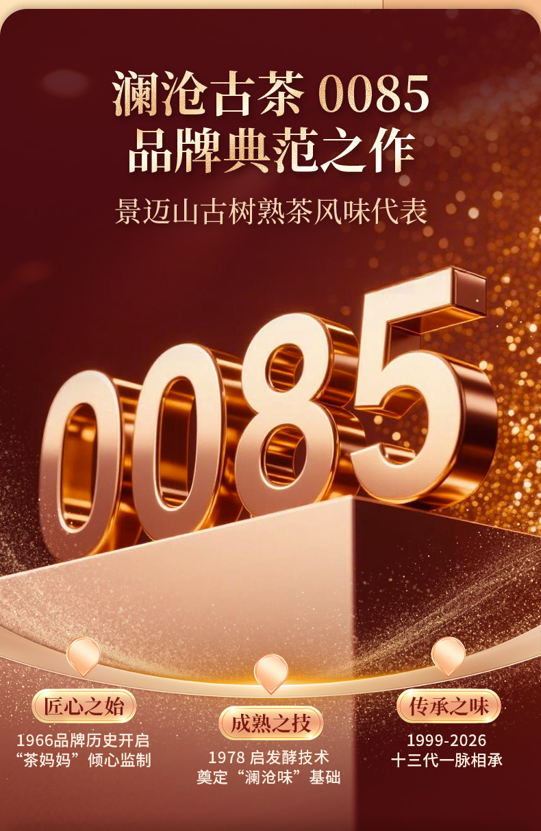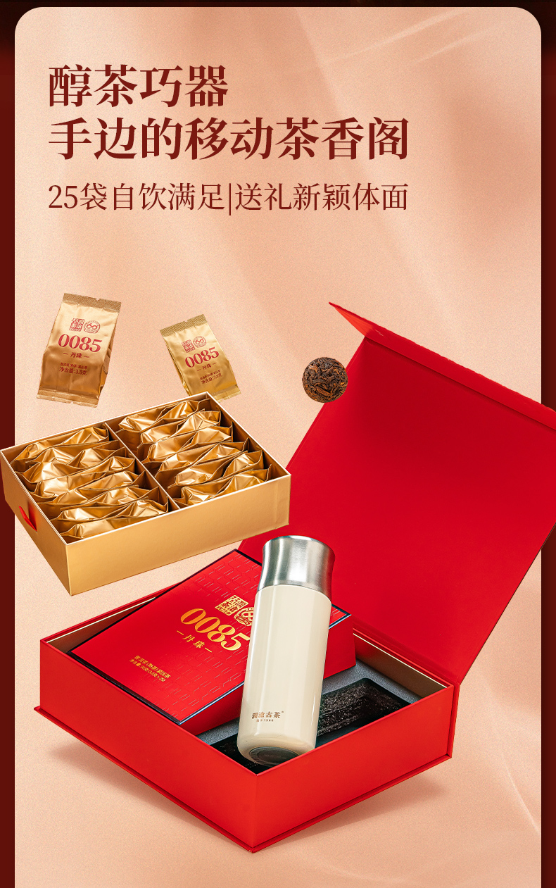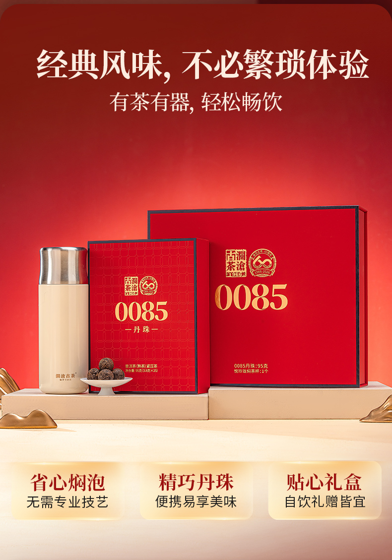 澜沧古茶第十三代景迈0085云南名山古树普洱茶熟茶丹珠+焖茶杯礼盒95g(3.8g*25袋)
