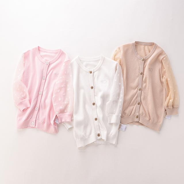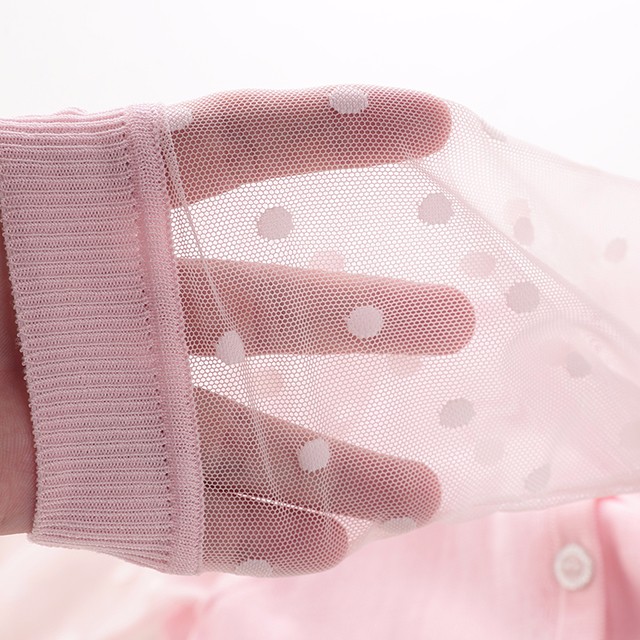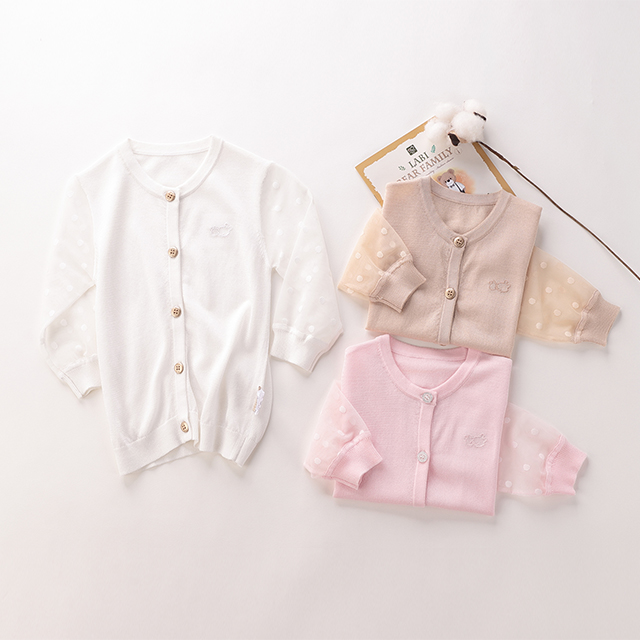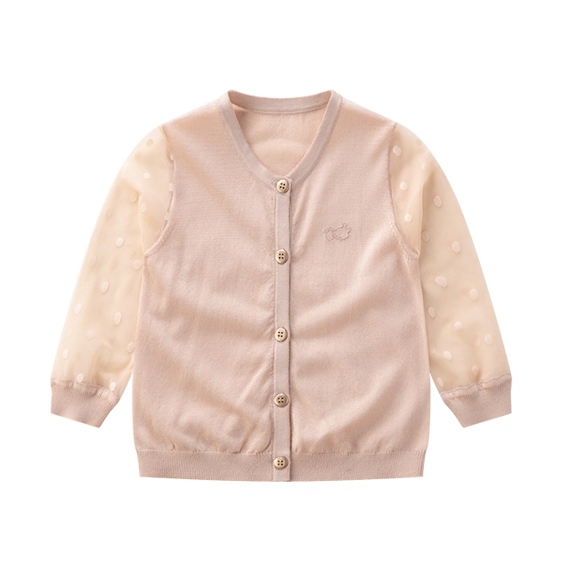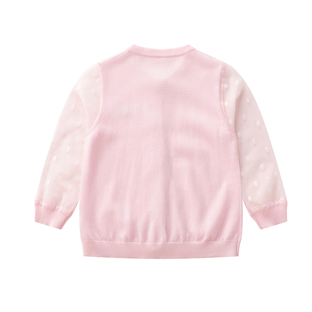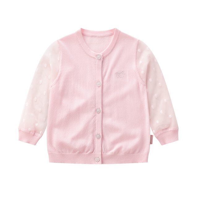 拉比-童衣类(春)D0优雅棉线拼接全开衣米白/粉红
