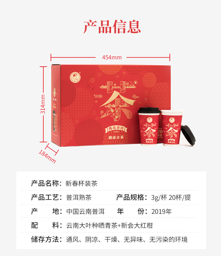 茶妈妈杯装茶陈皮普洱红柑新春版20杯礼盒装
