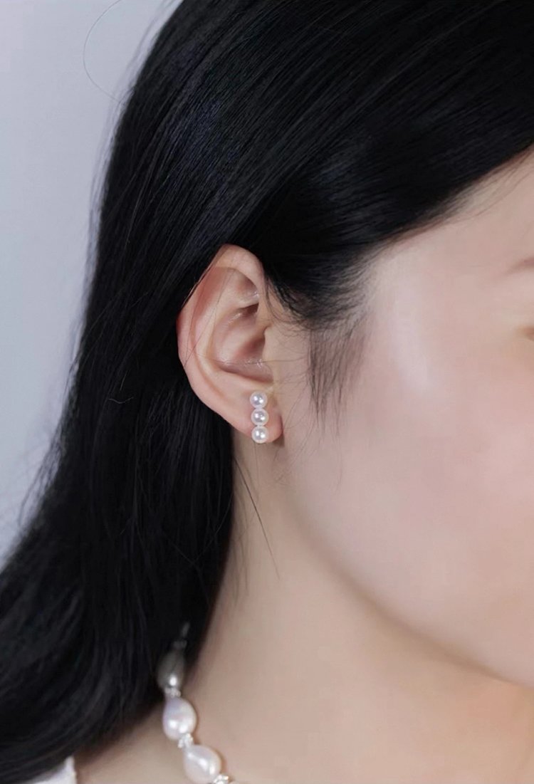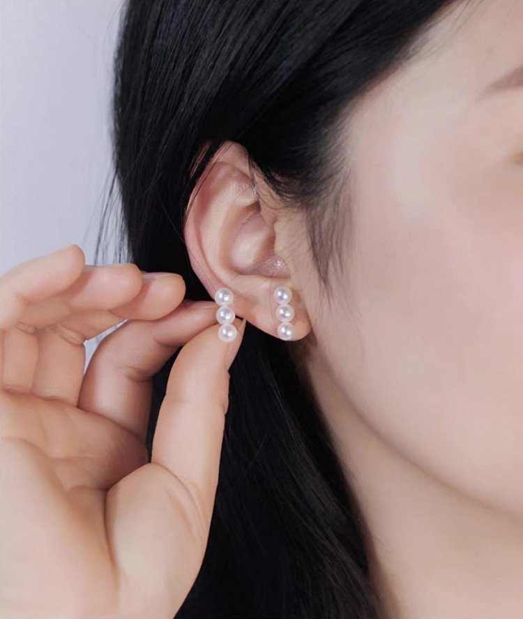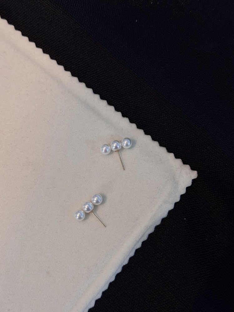 【名称】AKOYA 花珠级别 无瑕18K金 平衡木耳钉