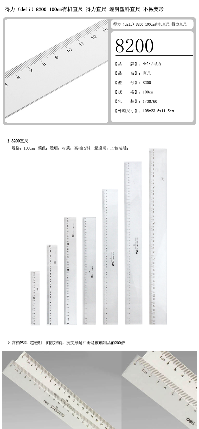 得力8200有机直尺100cm(只)