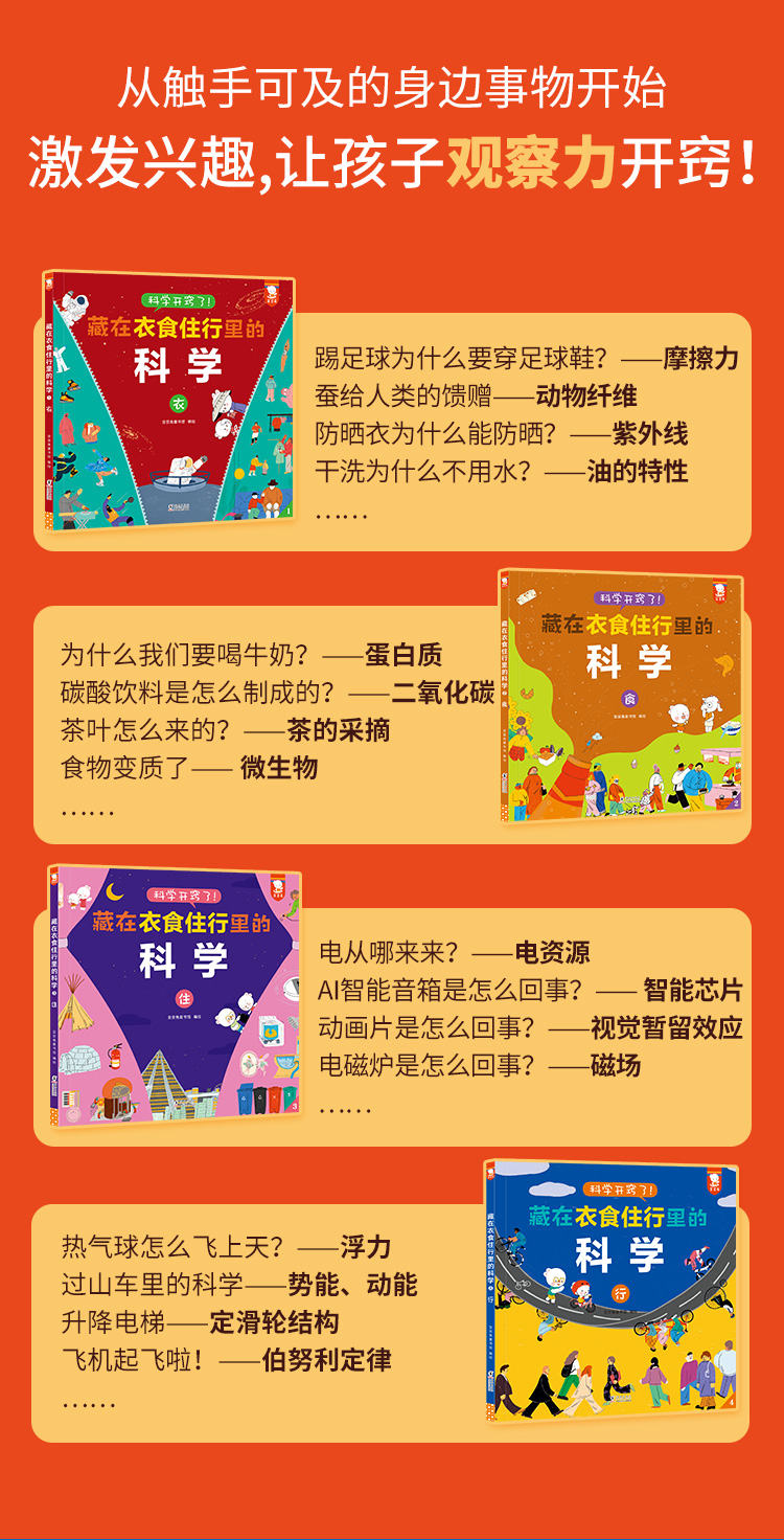 【3-10岁】《藏在衣食住行里的科学》全4册,用身边事物开窍孩子科学脑!全面补充扩展小学科学课,培养科学思维!