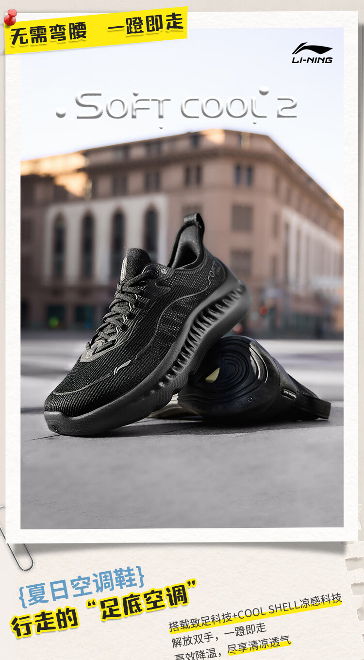 李宁肖战同款SOFT COOL 2丨潮流休闲鞋男鞋25新款舒适运动鞋AGLV009