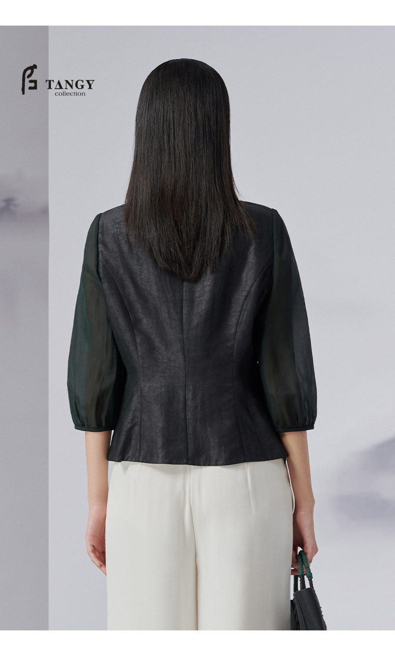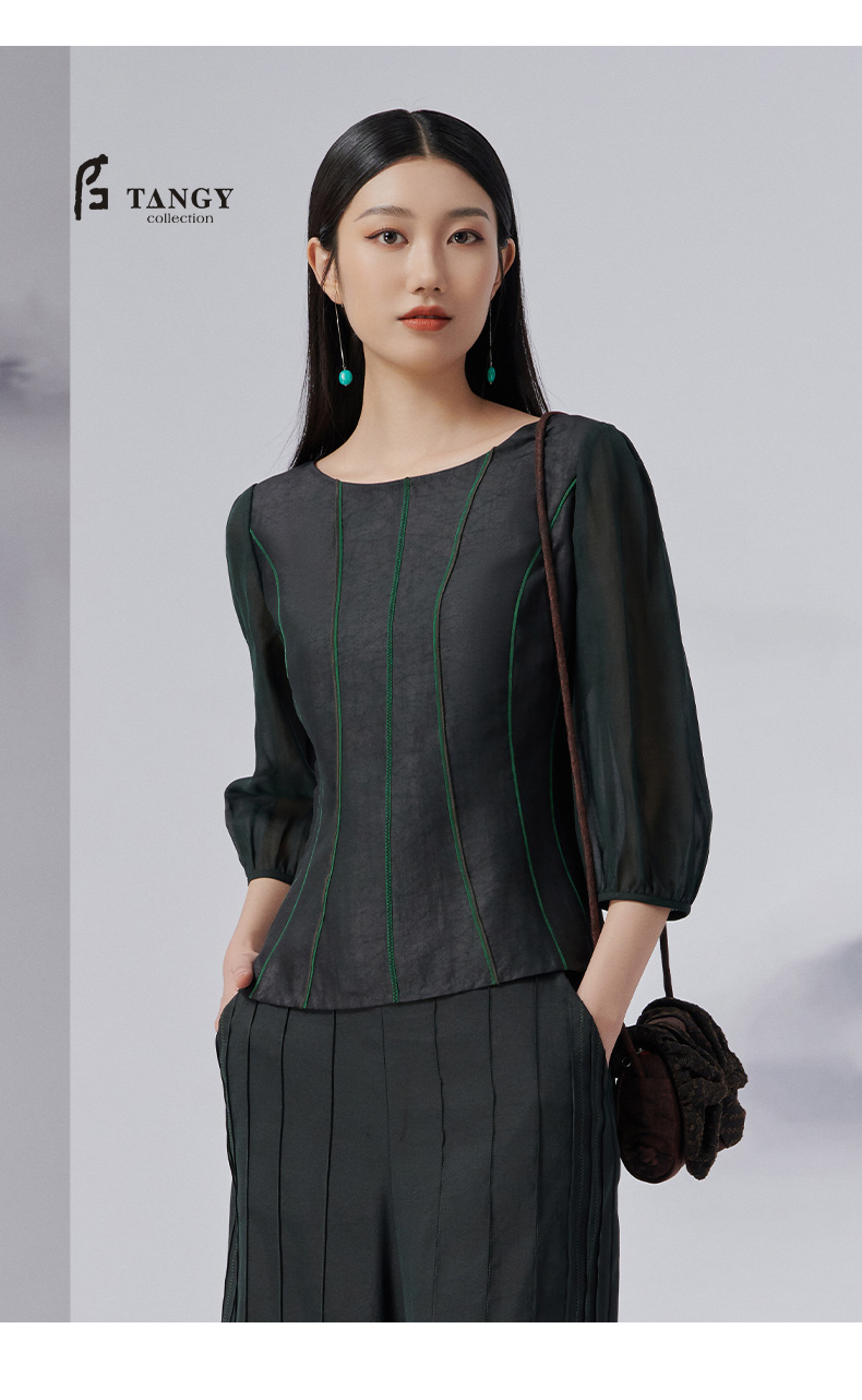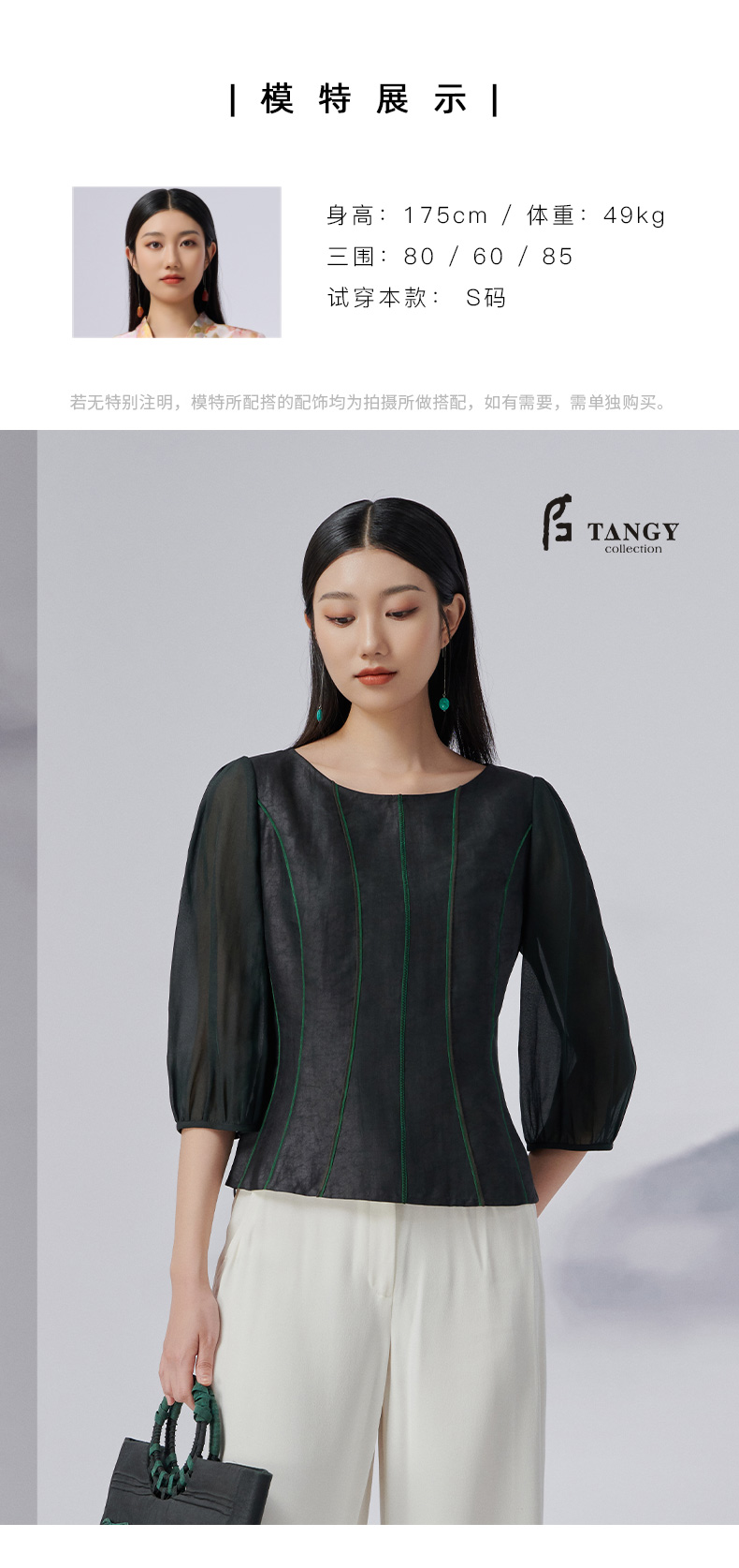 TANGY Collection/天意精品2022年秋冬新品时色系列真丝条纹茛绸T恤