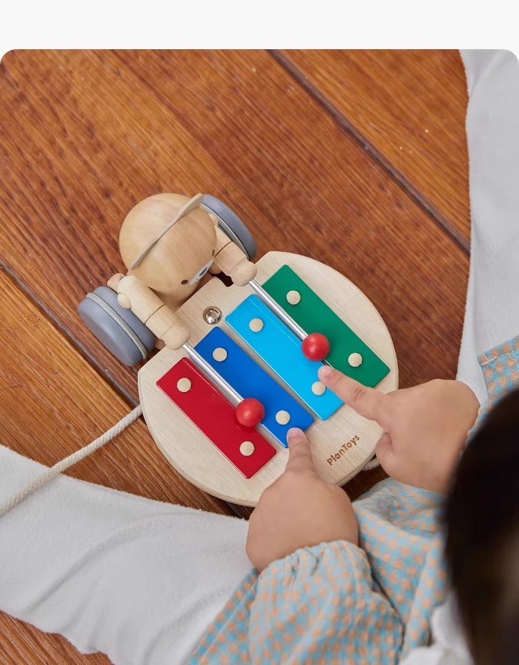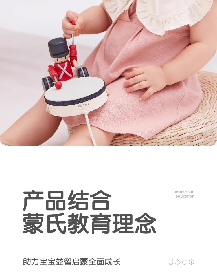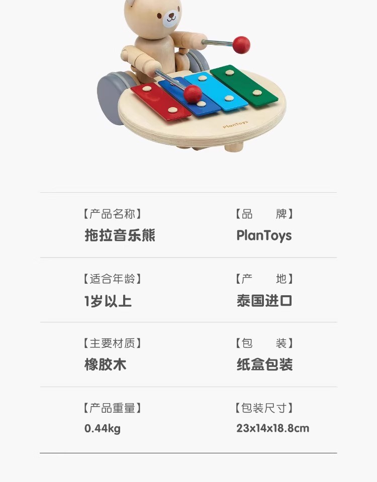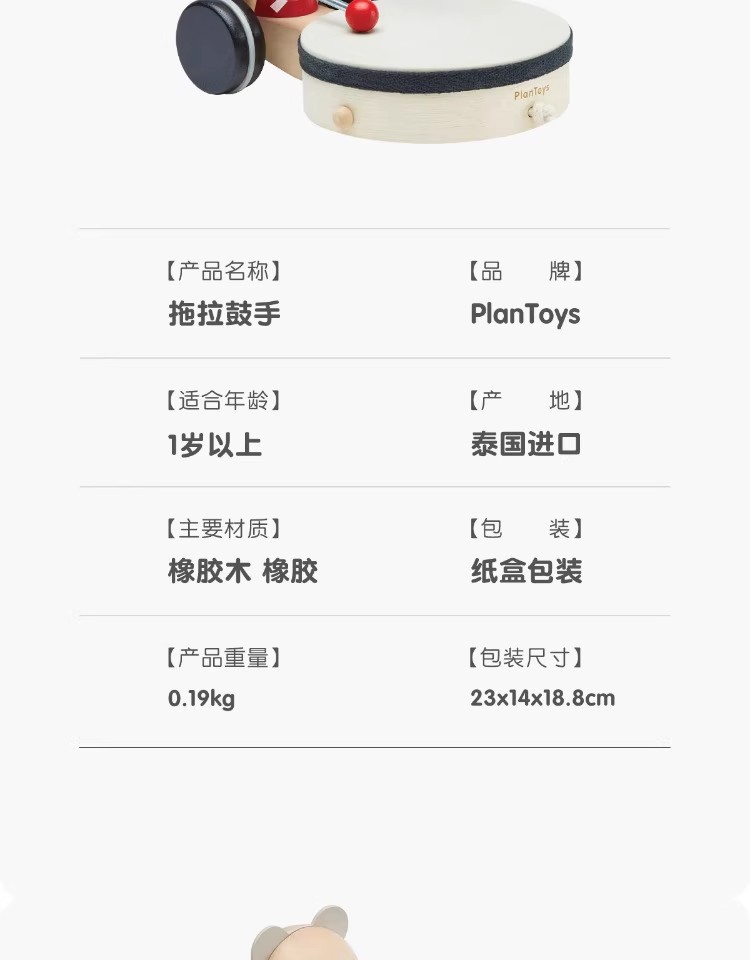 Plantoys 拖拉鼓手 小车儿童玩具音乐熊学步拉绳牵引爬行礼物 1岁+