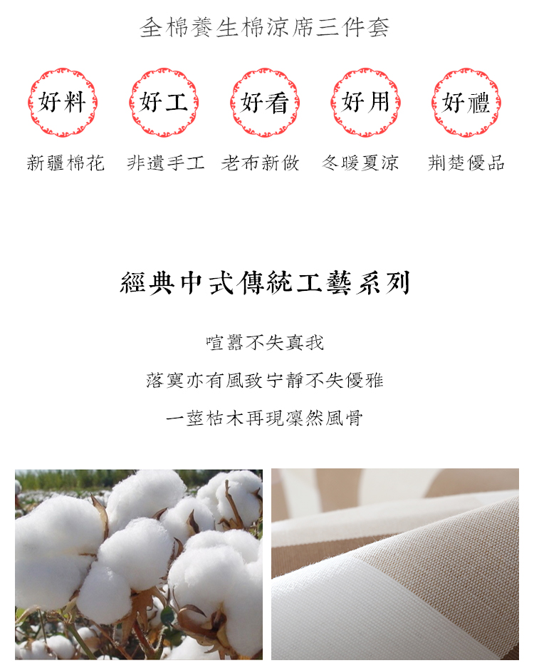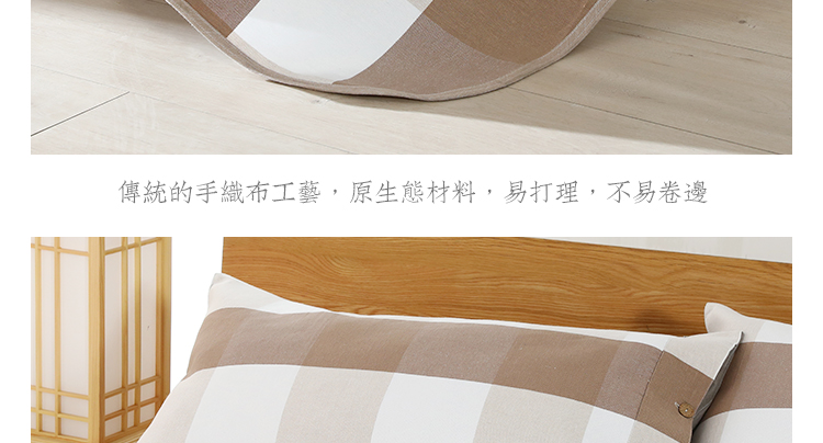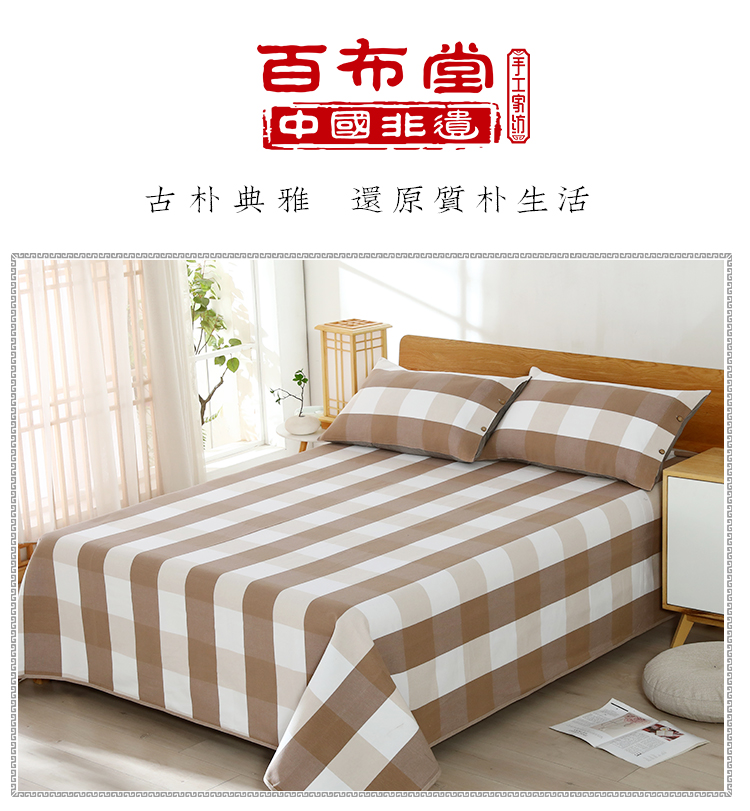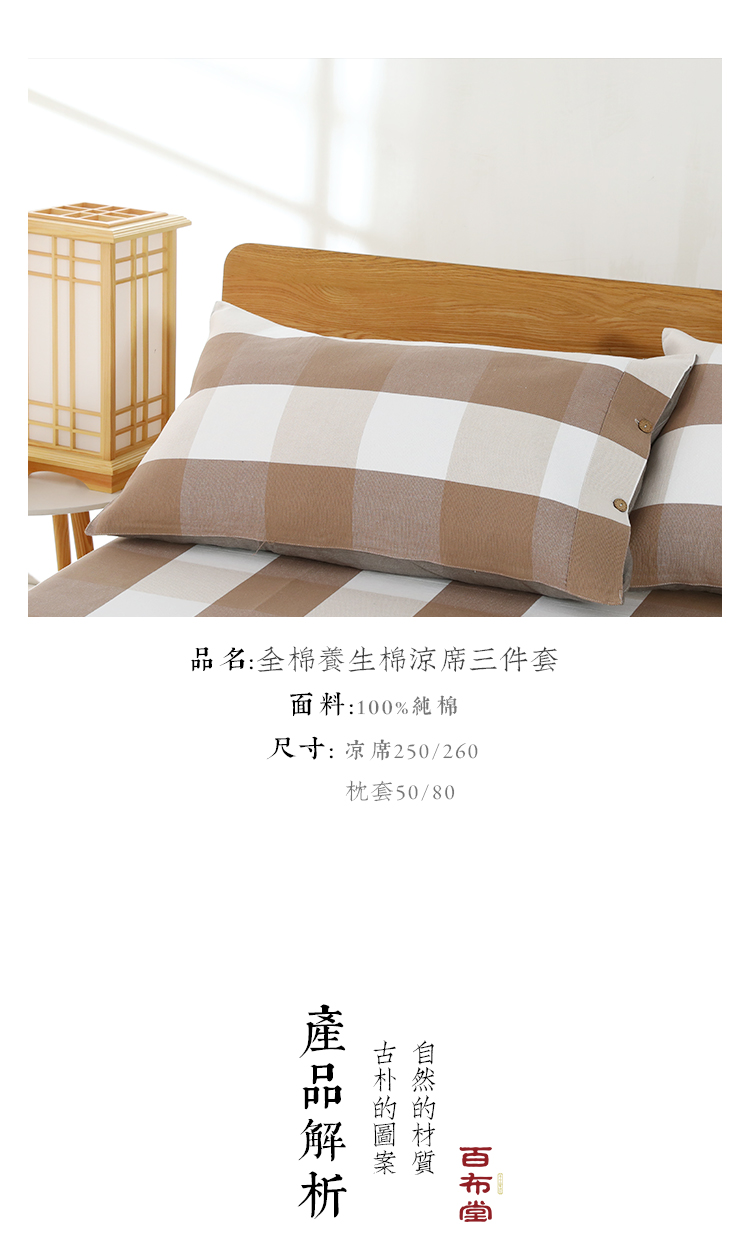 (乡村振兴商品)百布堂纯棉养生面凉席三件套 轻奢风(卡其色格子) 商品图2