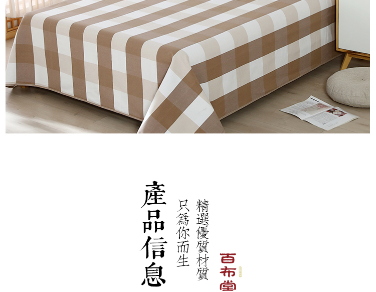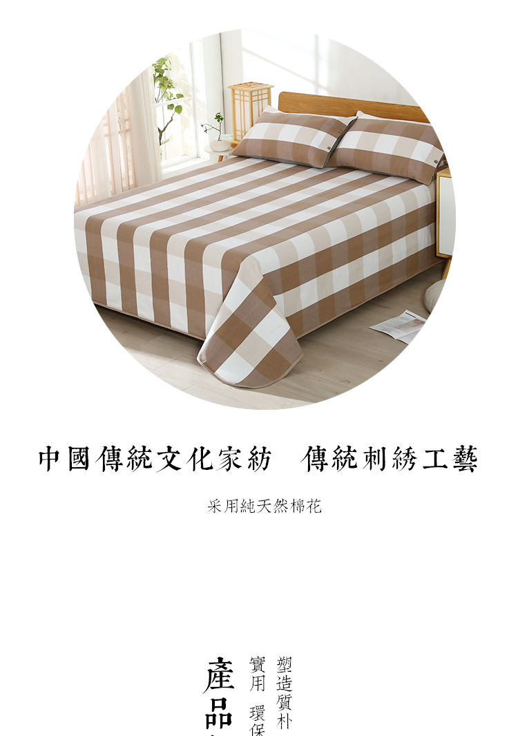 (乡村振兴商品)百布堂纯棉养生面凉席三件套 轻奢风(卡其色格子) 商品图0