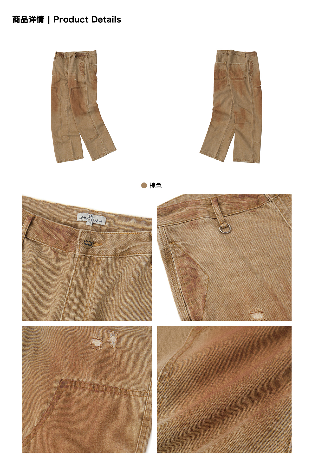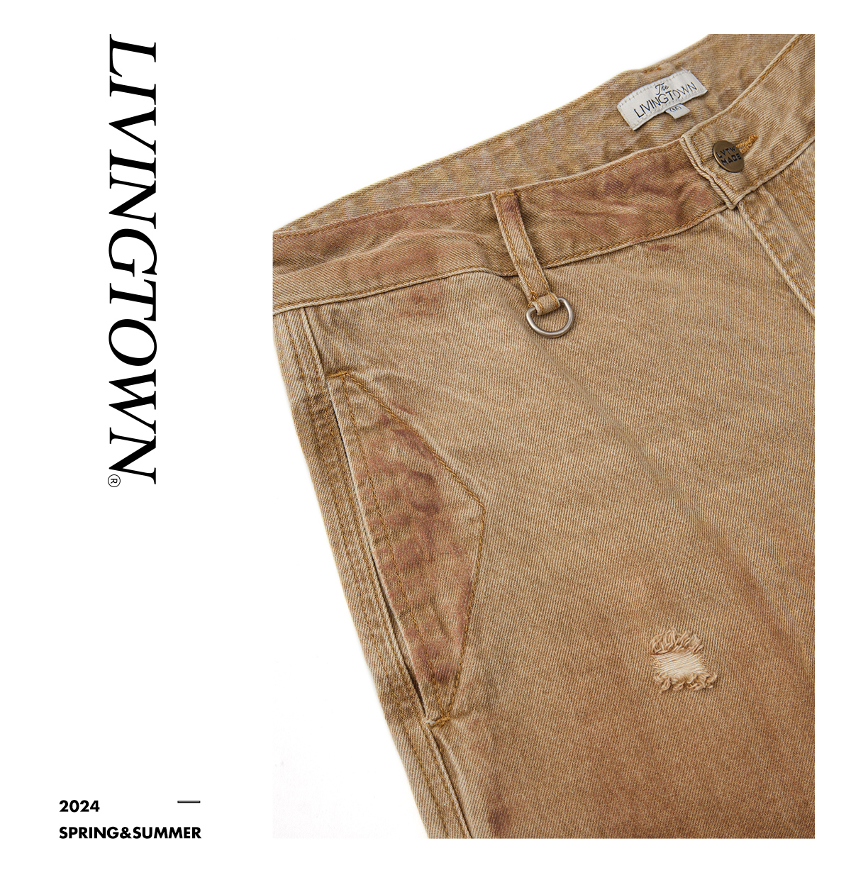 LIVINGTOWN/LT破洞泥染伐木微喇牛仔裤