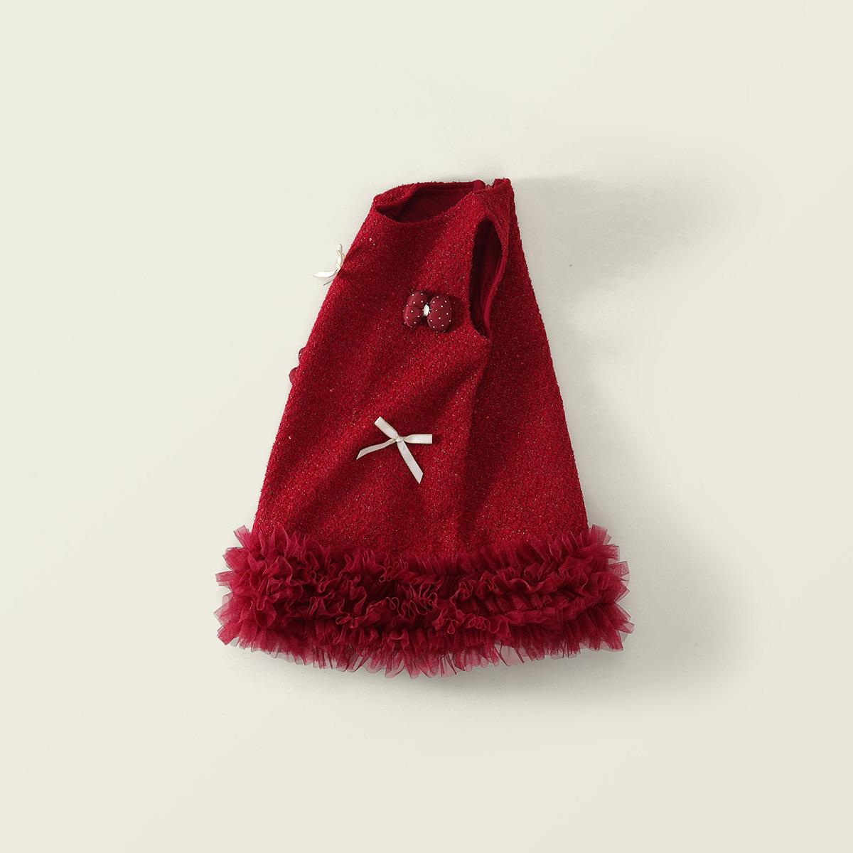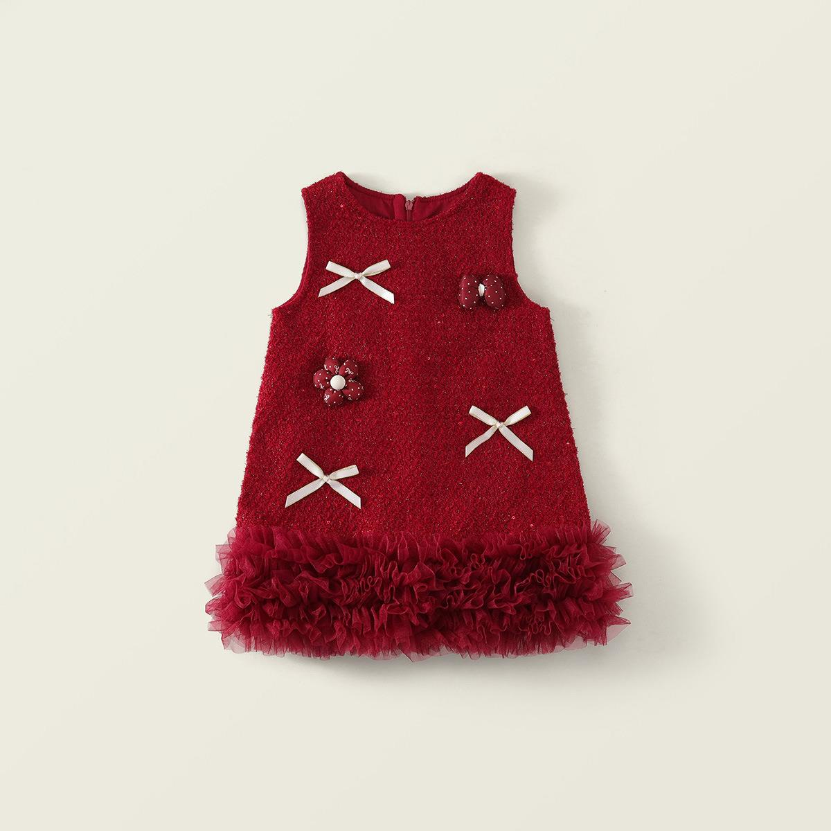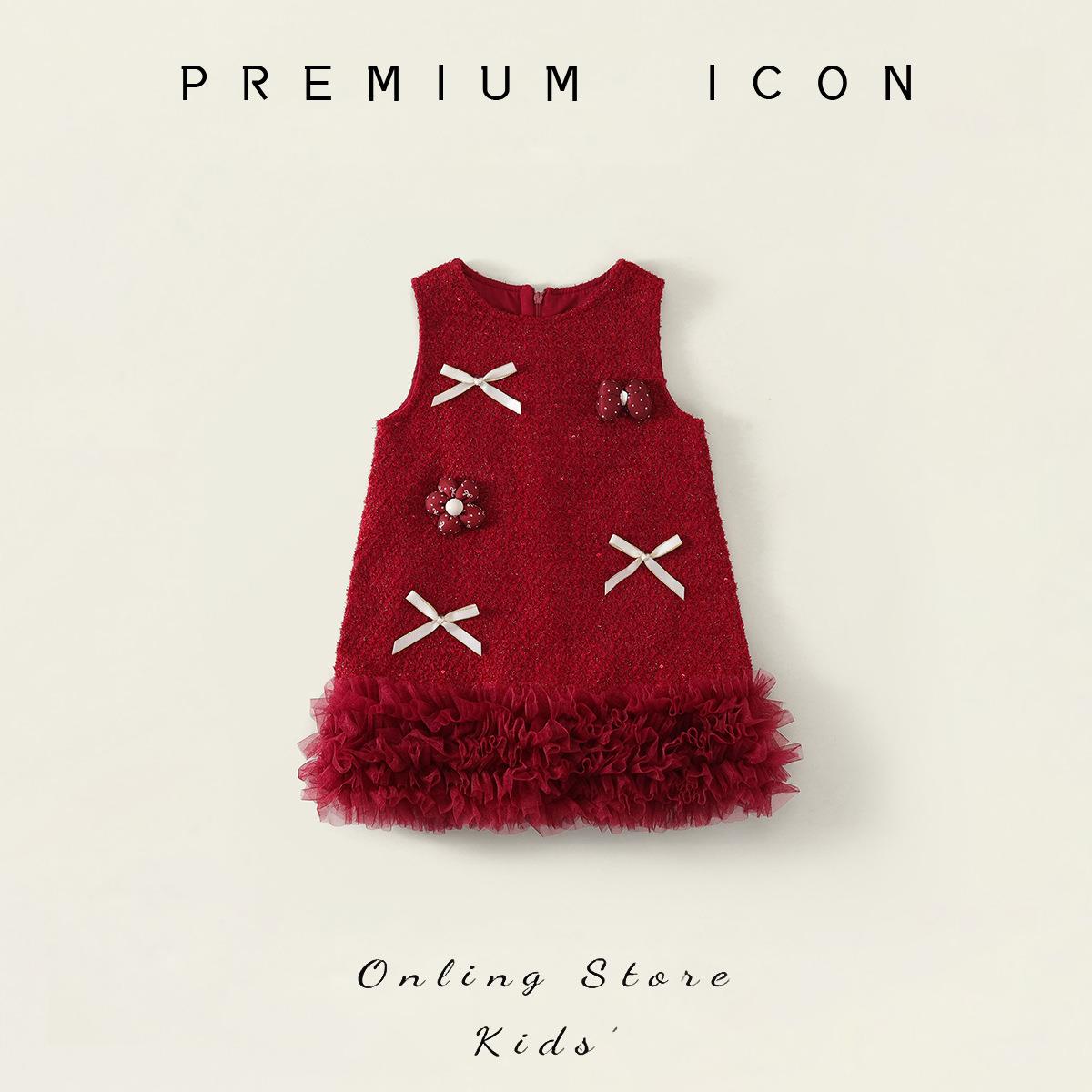 Hania2026年新年 女宝宝新年周岁生日礼服新款中小童红色洋气背心裙90-140★
