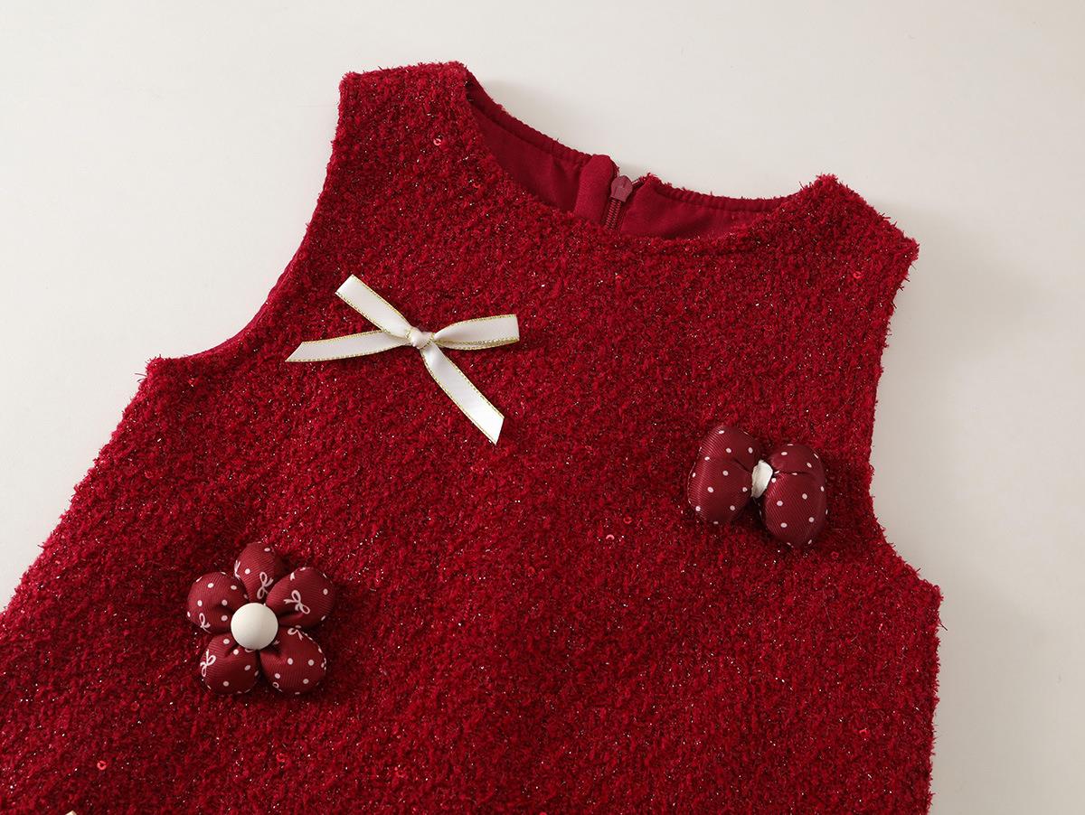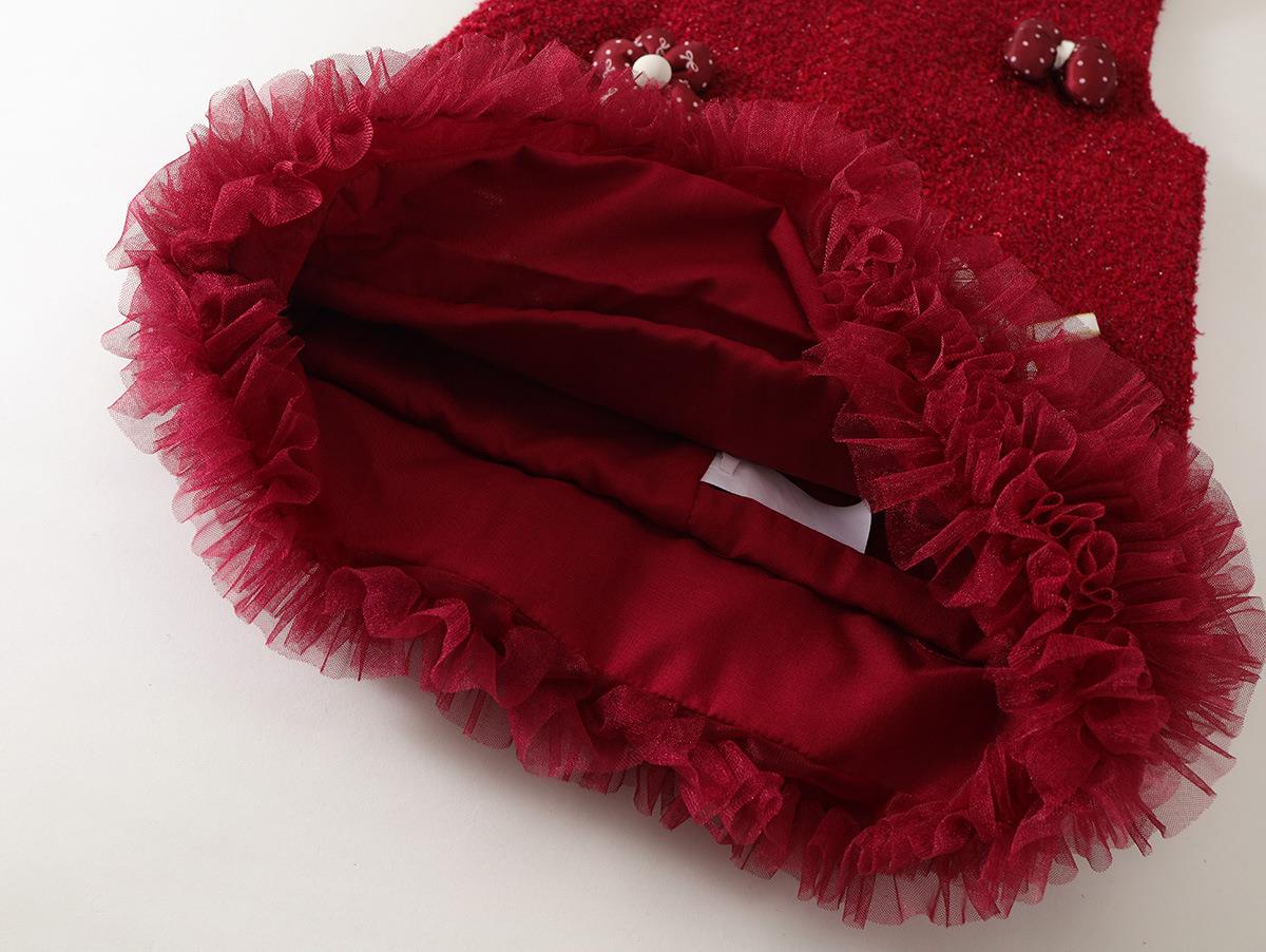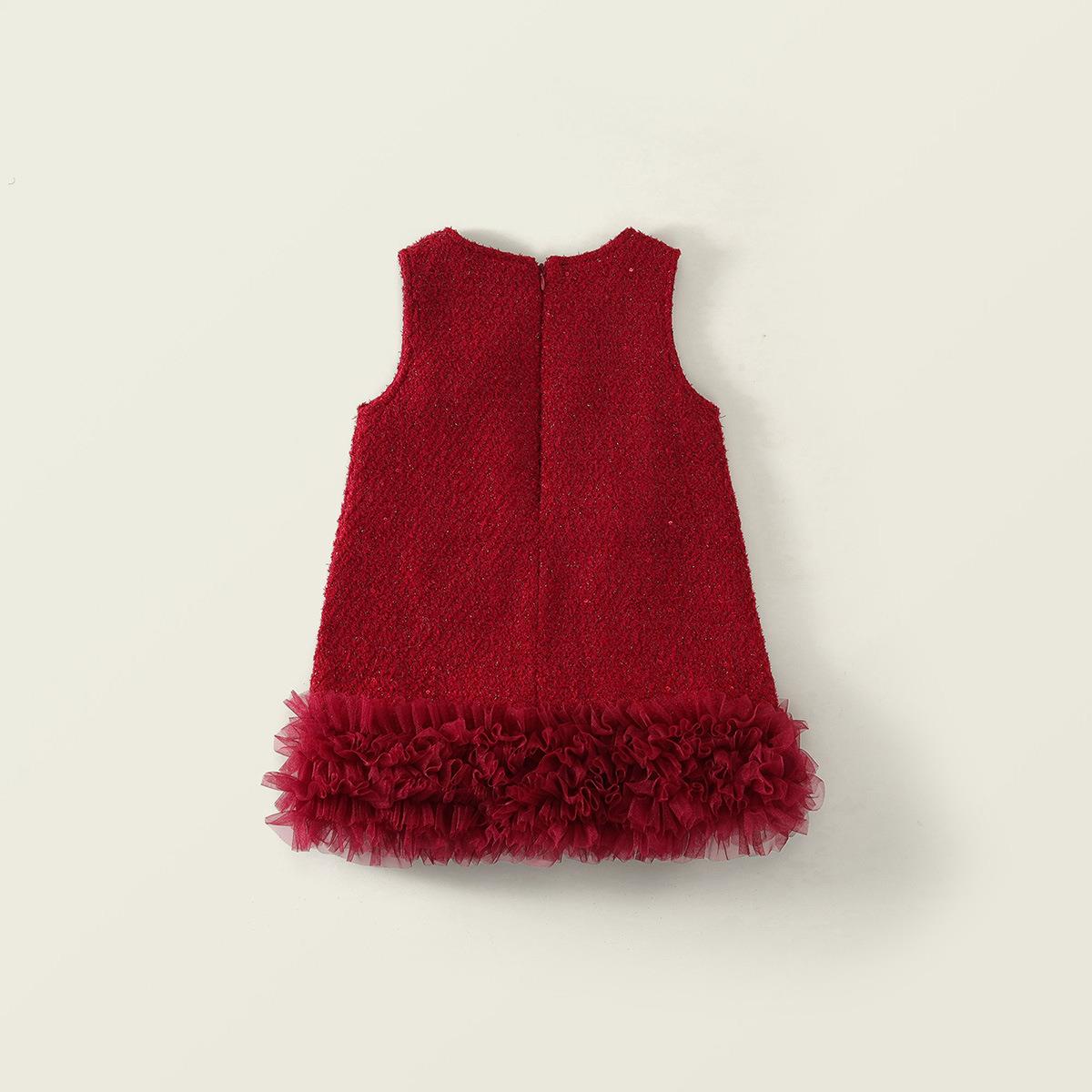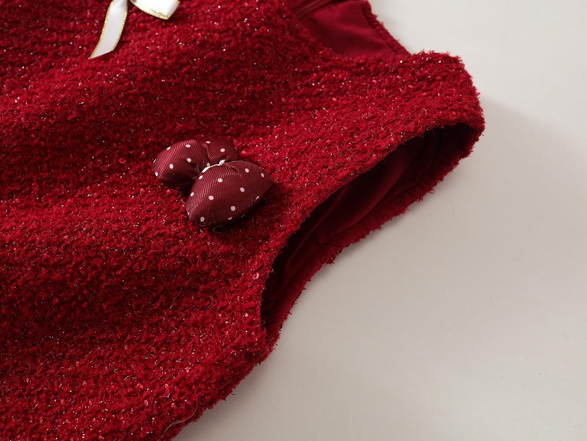 Hania2026年新年 女宝宝新年周岁生日礼服新款中小童红色洋气背心裙90-140★