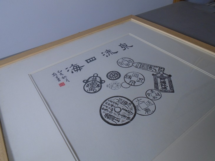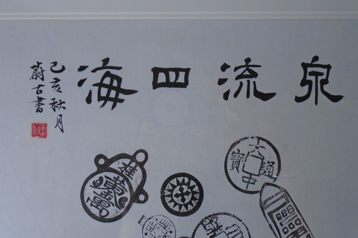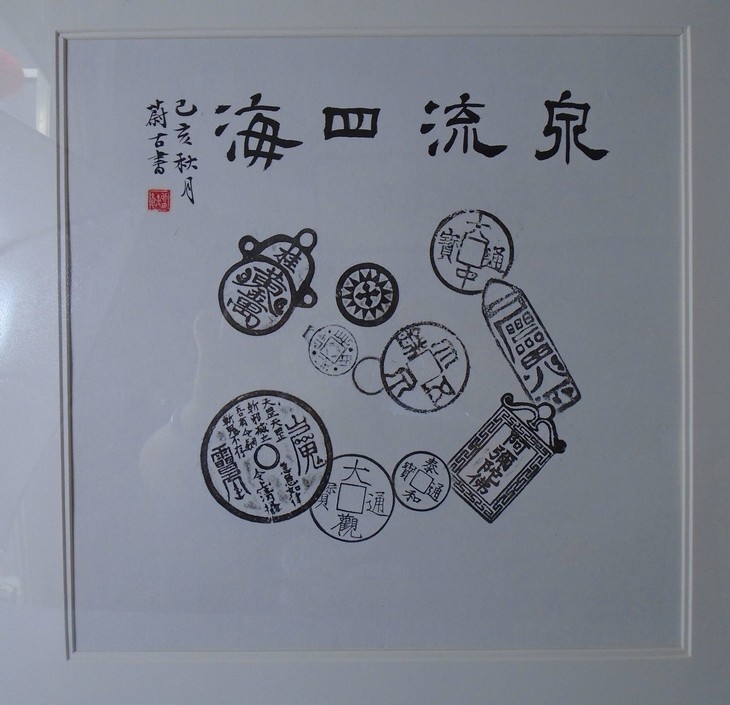 古泉书馆原拓挂件,书馆专职拓工精心拓纸而成,名家题字,精工装裱,超凡脱俗,钱币均为市面难寻的珍惜钱币,每一件都独一无二的精品, 精美绝伦!