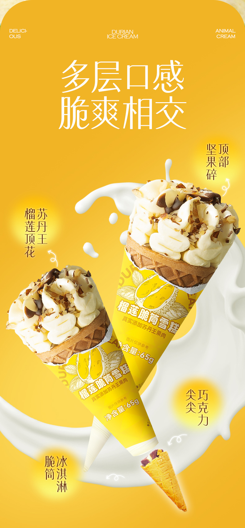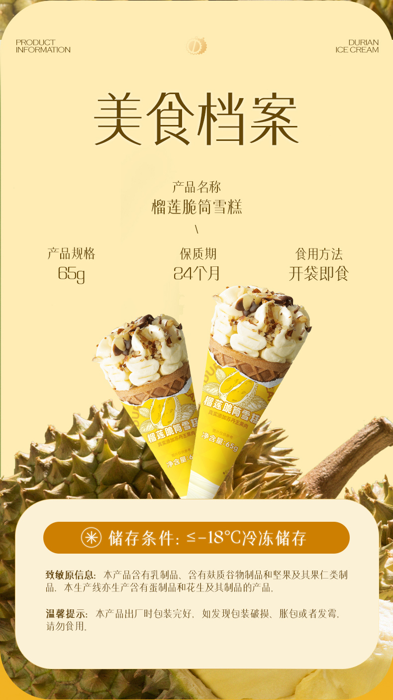 榴芒一刻 苏丹王榴莲甜筒冰淇淋 65g*10/65g*15