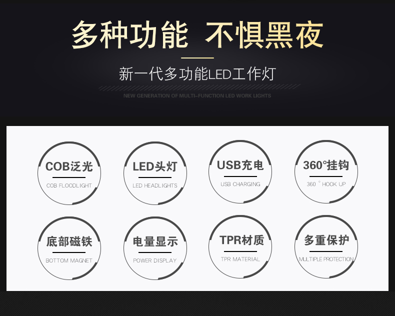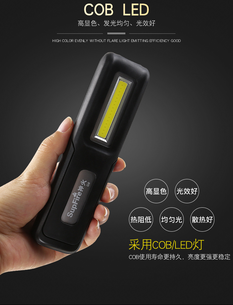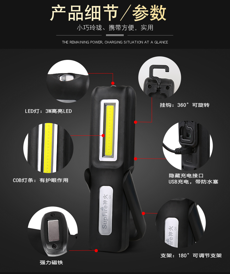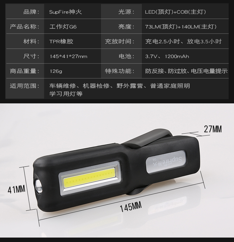 SUPERFIRE神火G6工作灯户外汽修灯led挂灯磁铁USB可充电强光手电