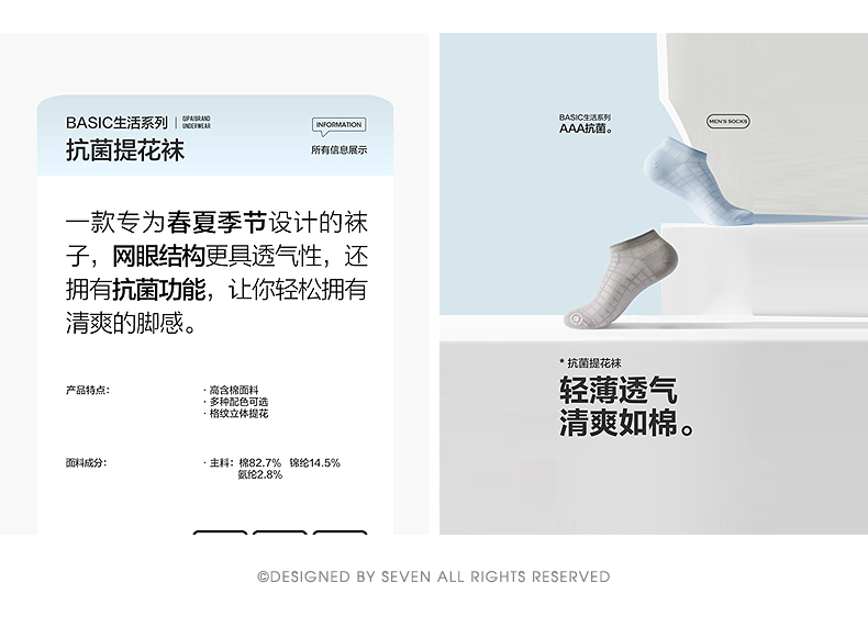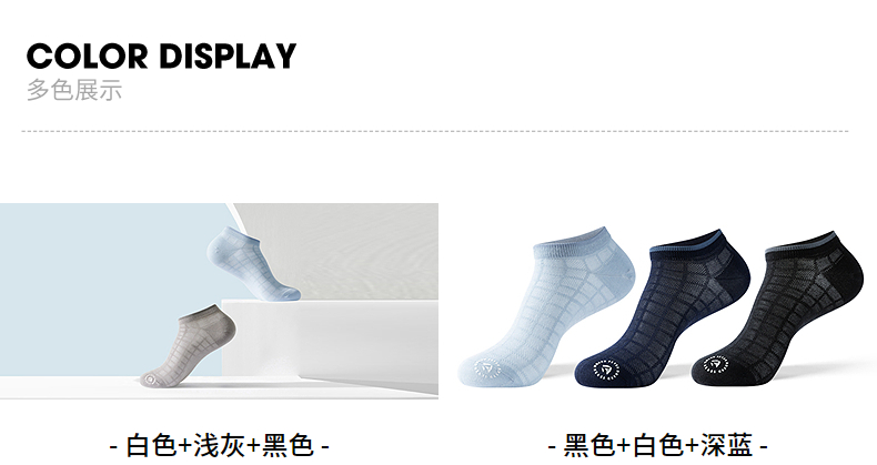 柒牌男士袜子夏季薄款短袜格纹休闲百搭男式防臭抗菌提花透气男袜 126F70310