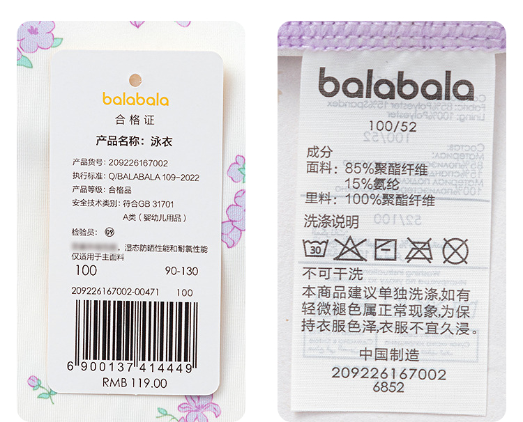 巴拉巴拉儿童泳衣男女童宝宝2026年新款连体泳装防晒耐氯泳衣裤