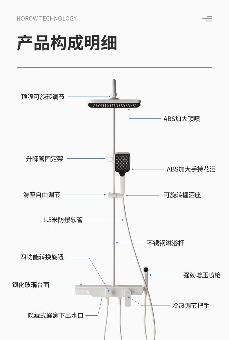 希箭(HOROW)花洒套装 雨霏Z系列四功能大置物花洒O2O(不含安装) 雨霏白色四功能大置物花洒0405D