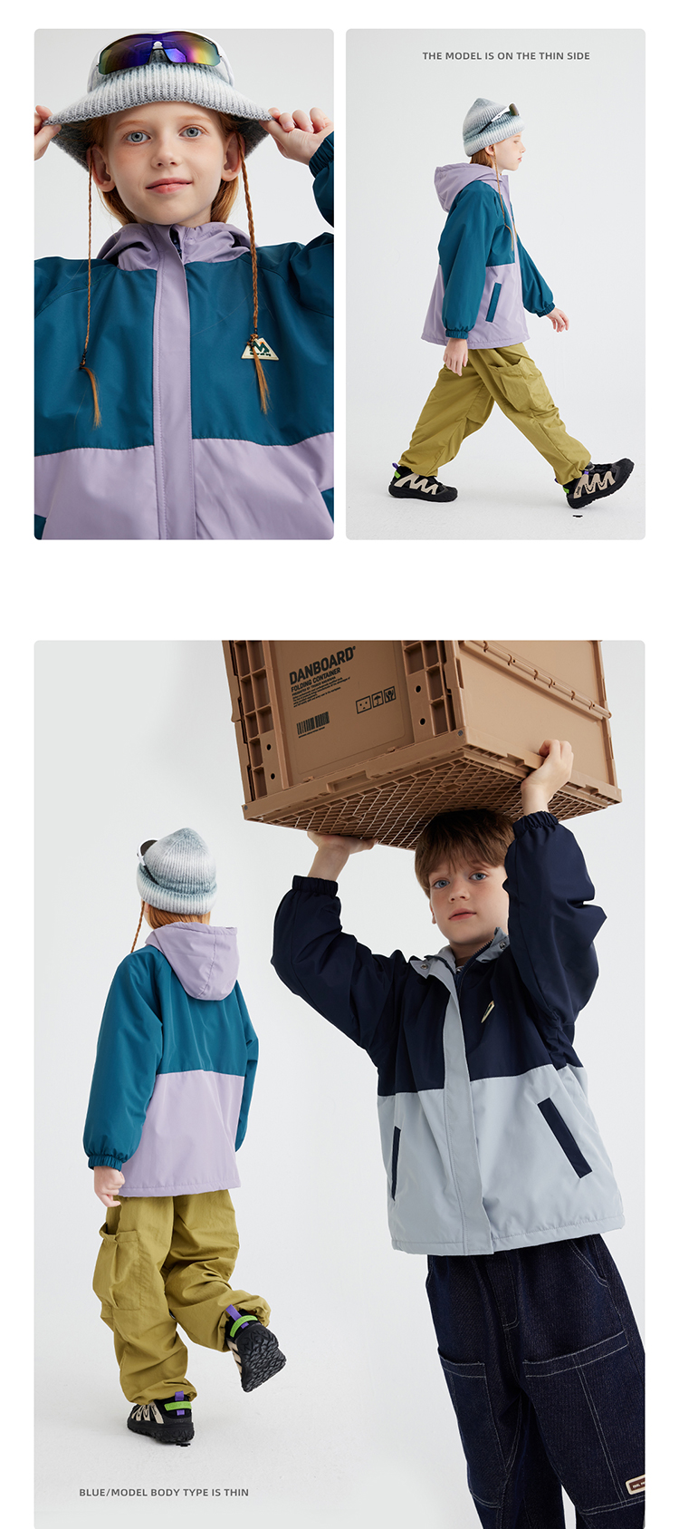 fx-儿童拼色徽标加厚外套 PQWT2412
