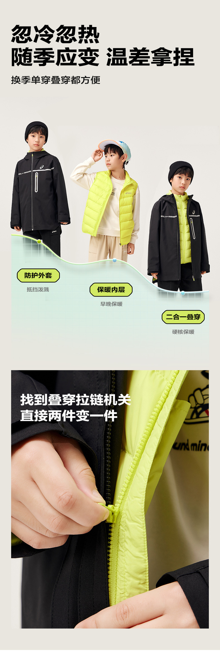 ASICS/亚瑟士童装中大童中性款便服外套2024微宽松版类冲锋衣夹克