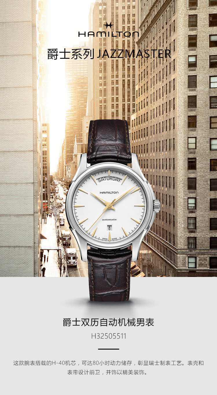 汉米尔顿 Hamilton 爵士系列双历自动机械表 H32505511