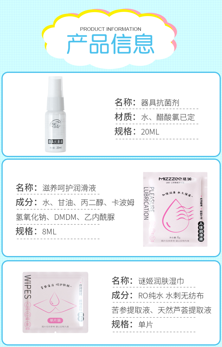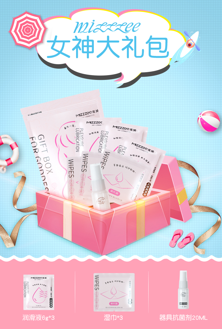 谜姬 女神大礼包情趣避孕套 女性润滑液润肤湿巾成人性用品夫妻房事情趣用具器具清洗喷剂