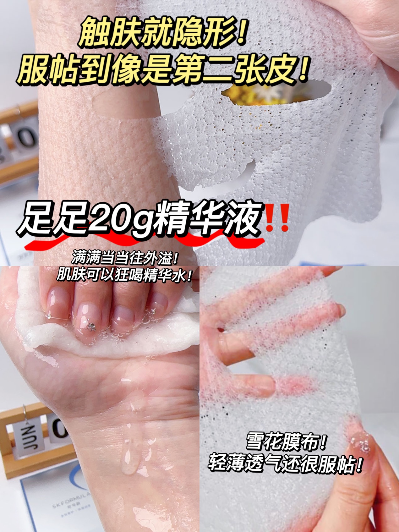 √进口硅藻泥雪花纹膜布,20g满满精华液,行走的肌肤“小水库”