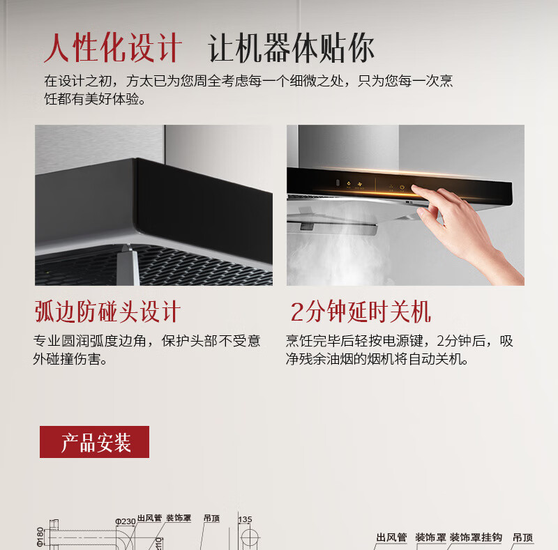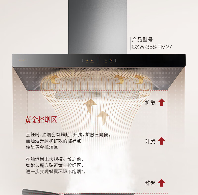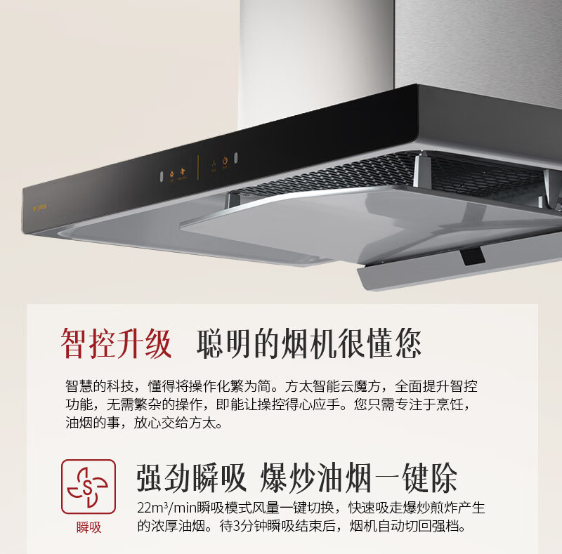 方太(FOTILE)全新升级 顶吸烟机 蝶翼环吸不跑烟 20m³大吸力 2分钟延时关机 CXW-358-EM27(单罩)