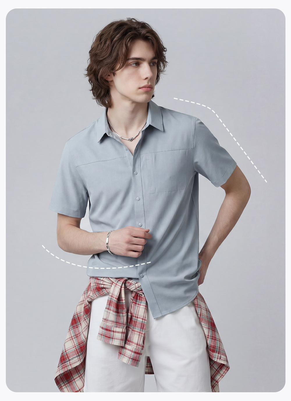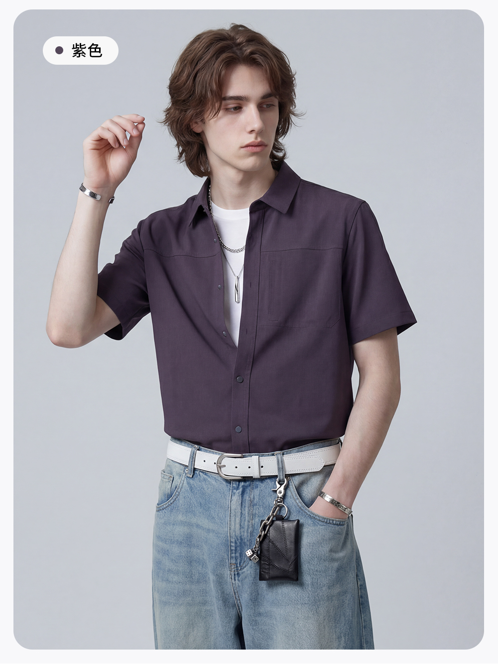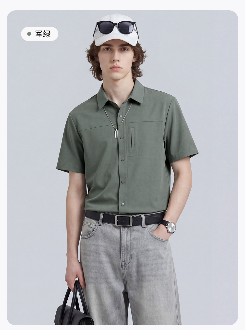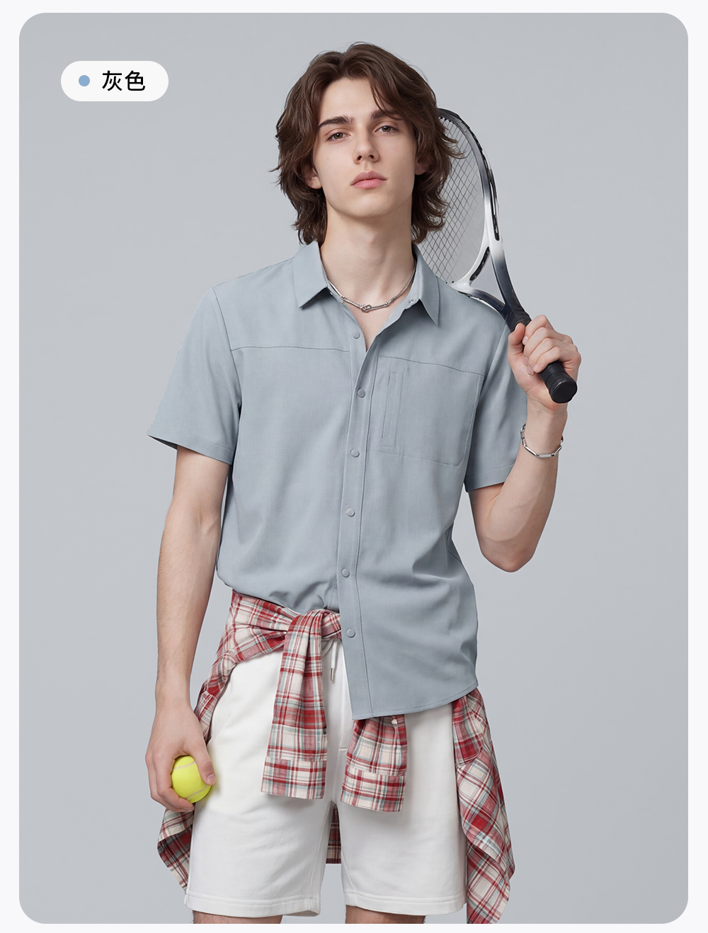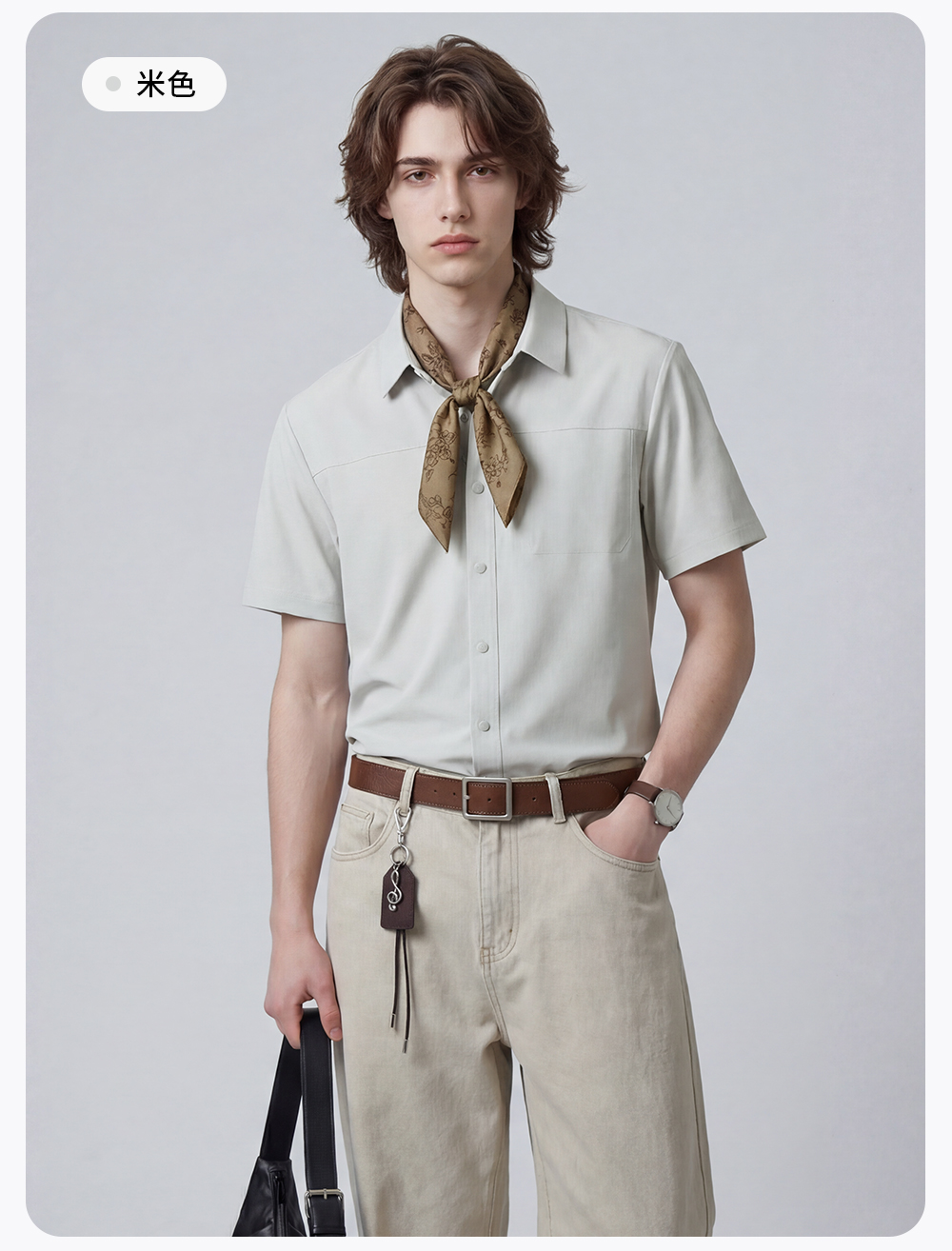 【不易变形】圣得西衬衫男款短袖2026新款春季舒适百搭休闲风上衣