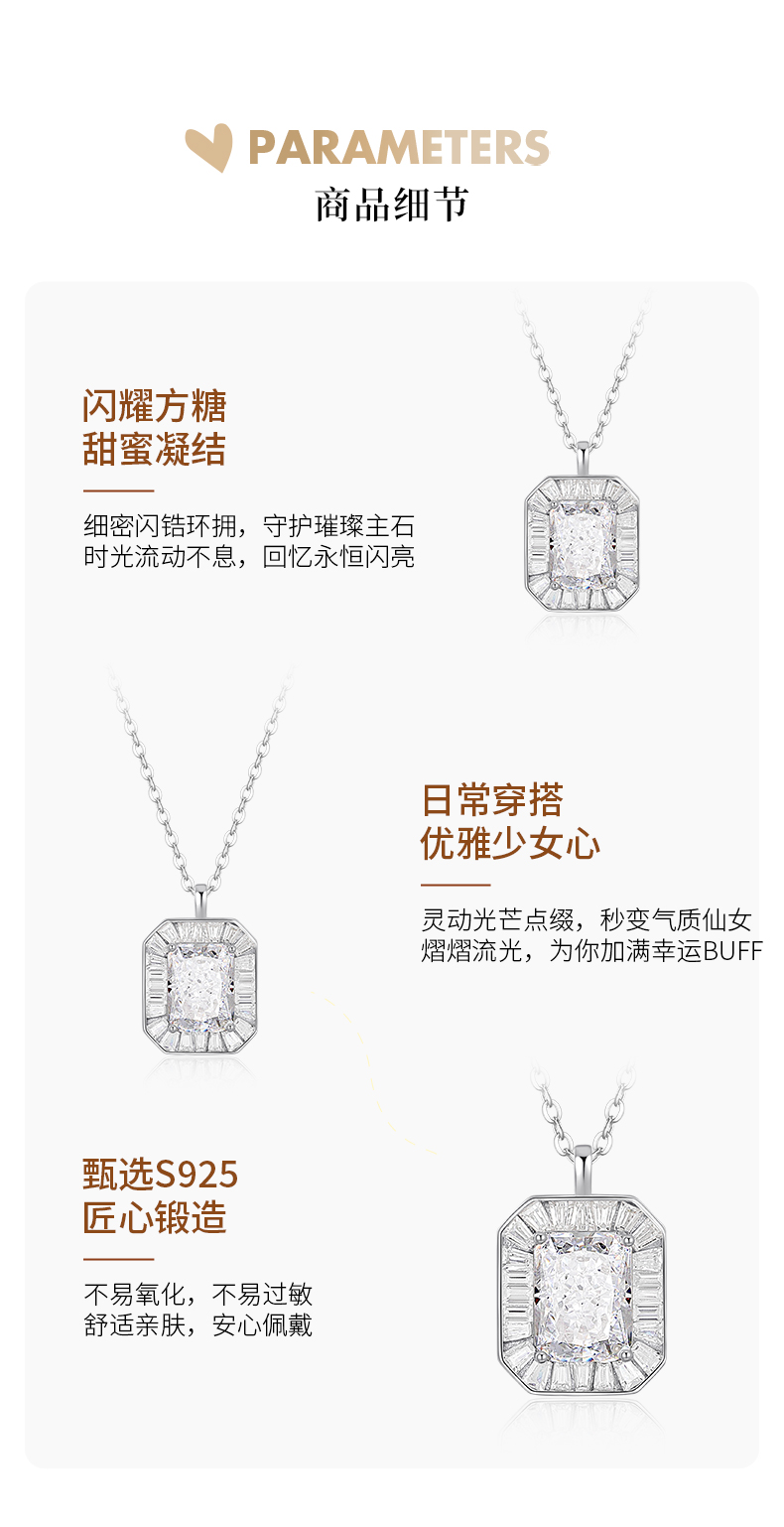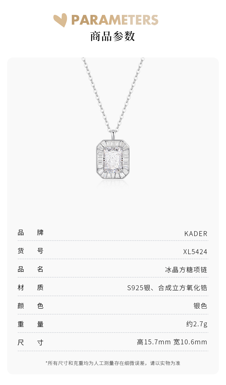 卡蒂罗KADER 冰晶方糖项链 轻奢简约镶嵌大颗闪锆小众高贵气质冷淡风璀璨闪耀锁骨链 甜美可爱少女心显白神器
