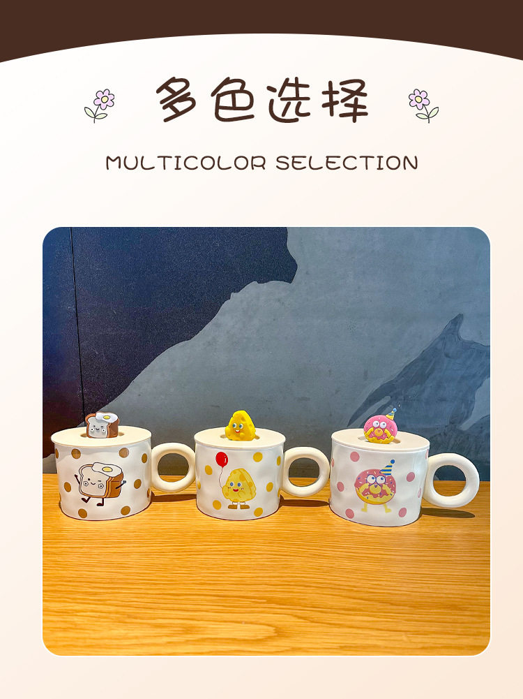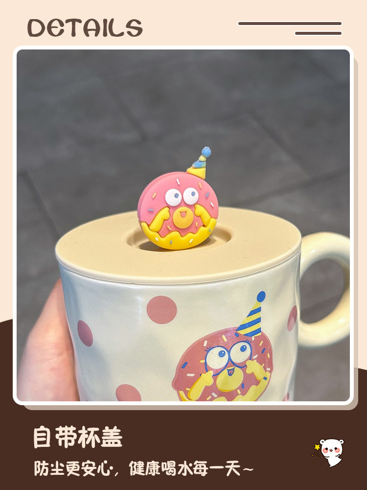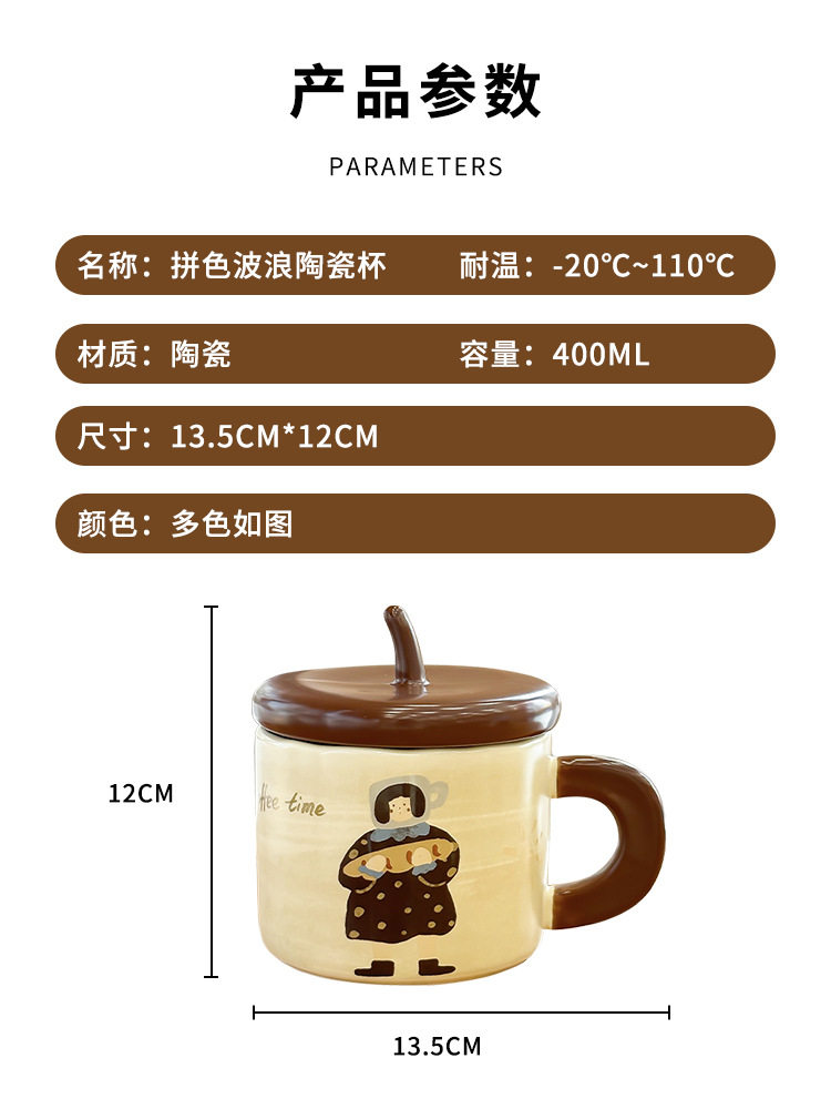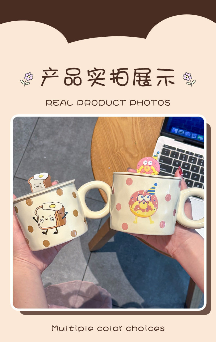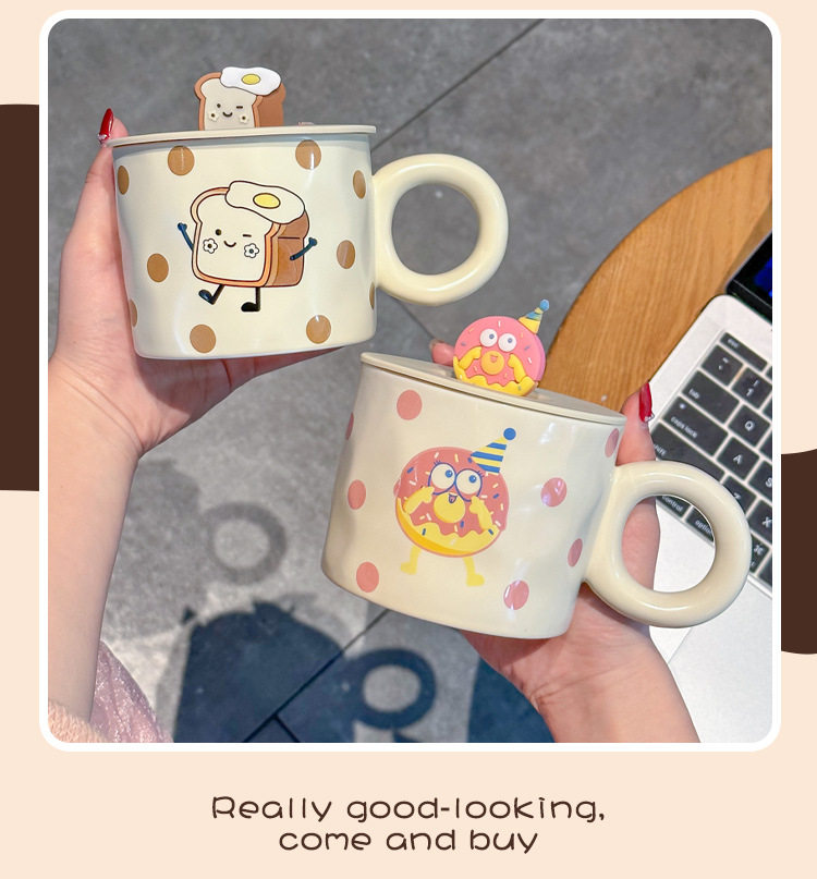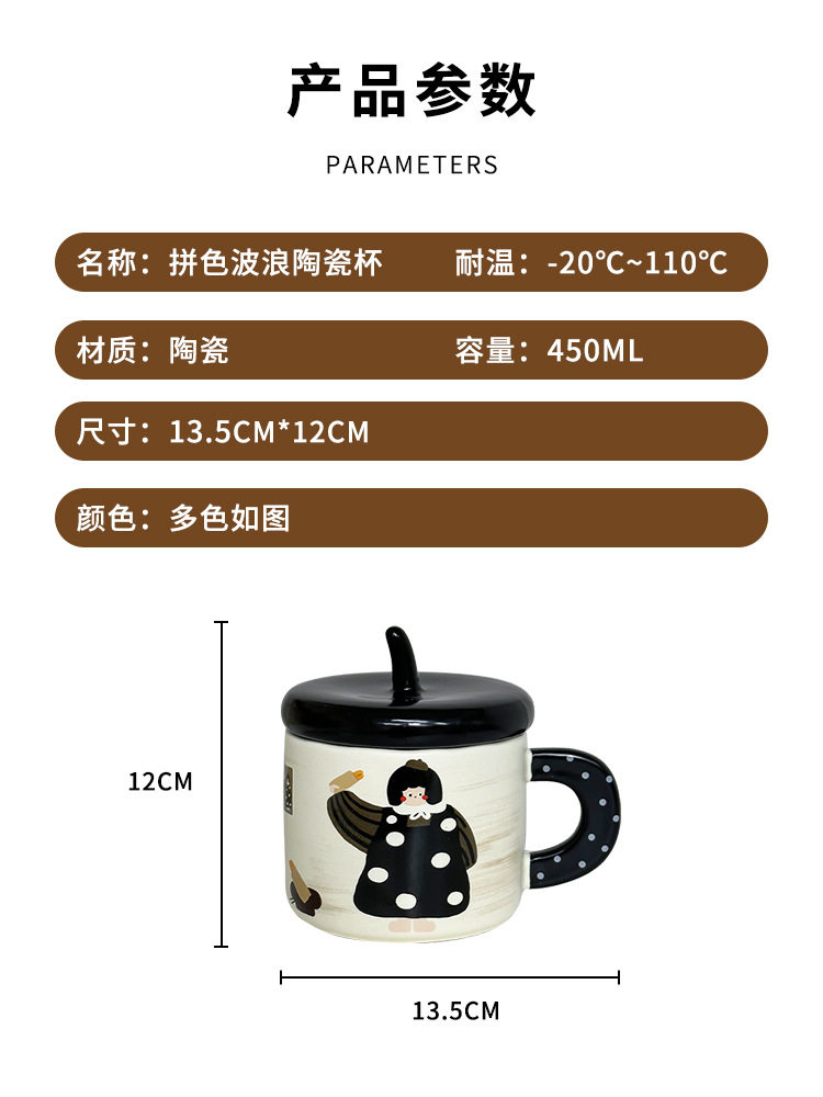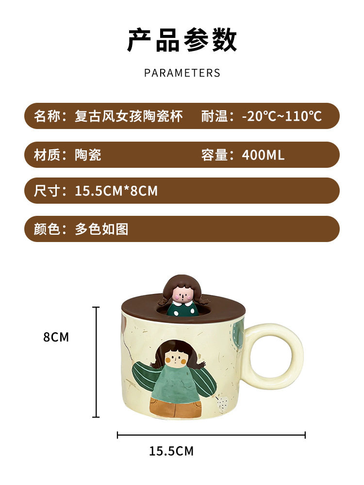卡通可爱小女孩插画杯子带盖水杯陶瓷马克杯情侣杯早餐杯咖啡杯