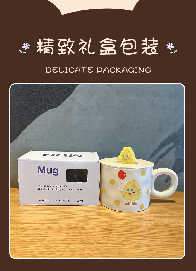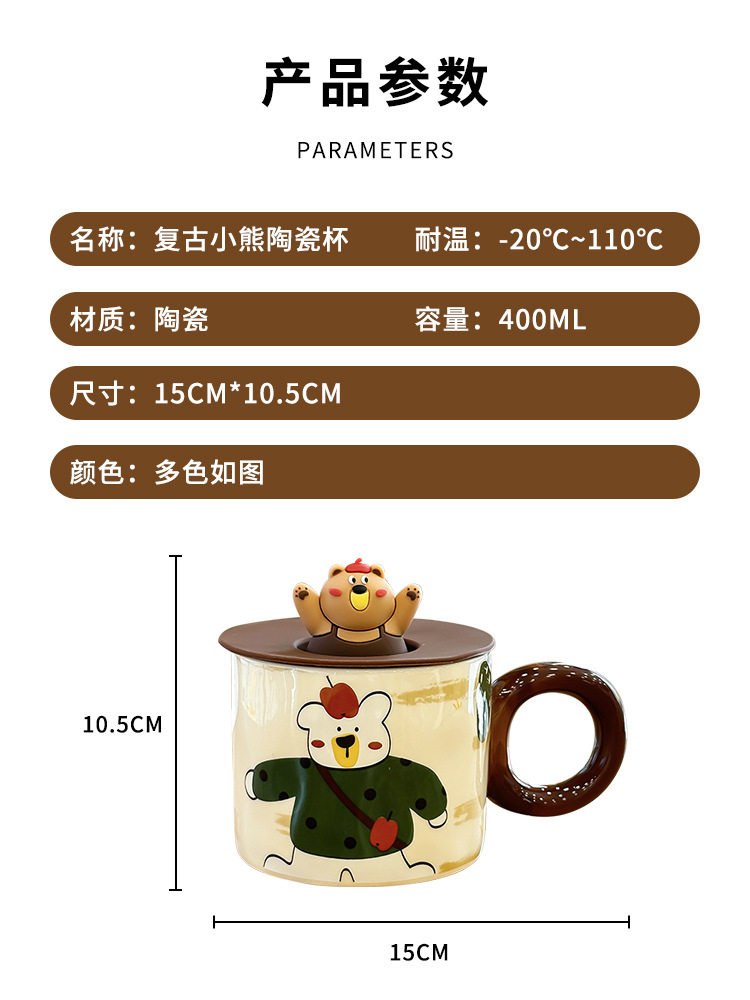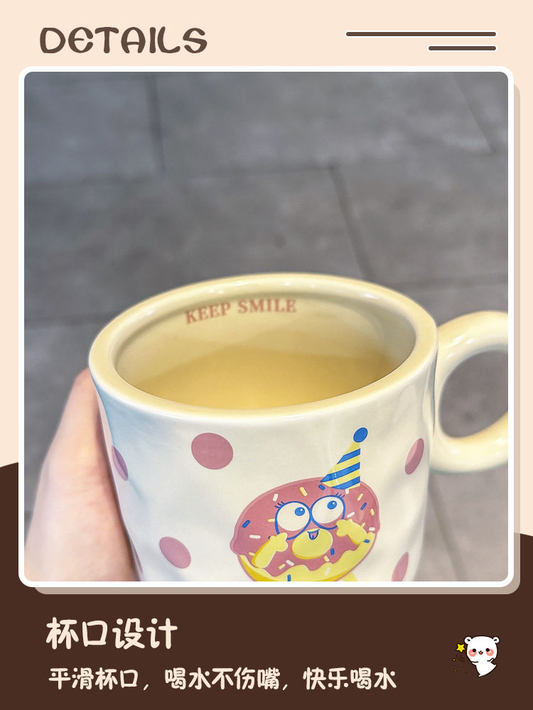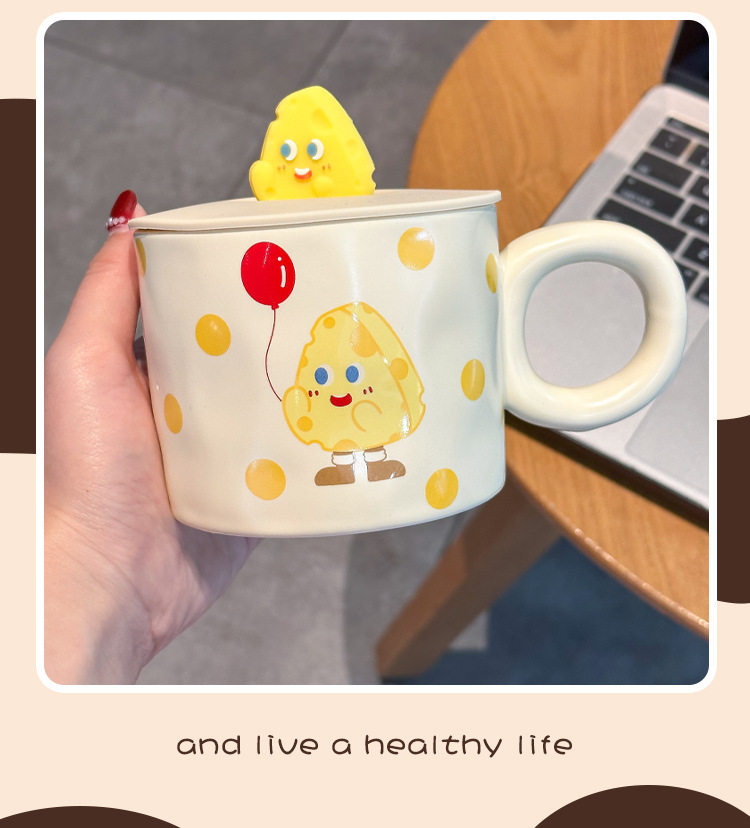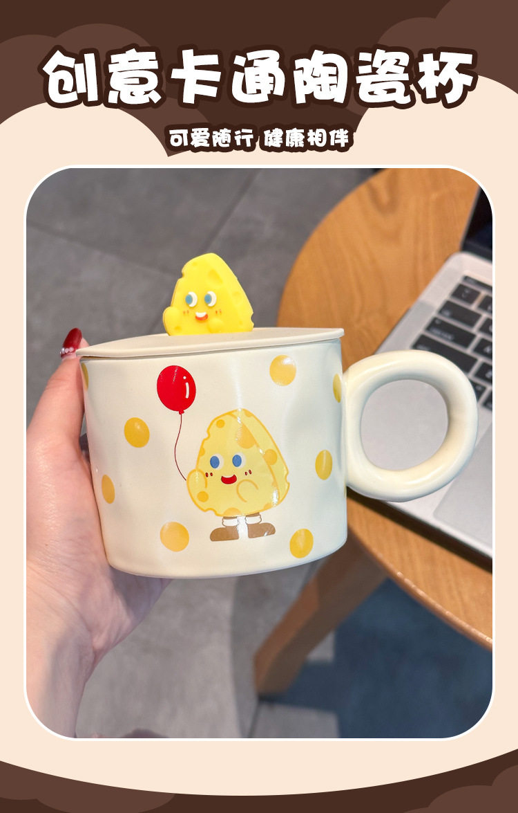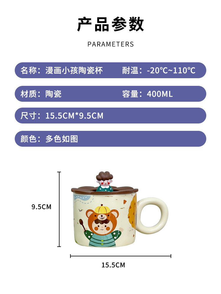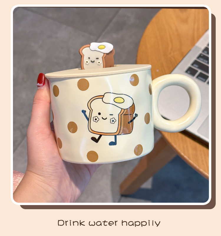 卡通可爱小女孩插画杯子带盖水杯陶瓷马克杯情侣杯早餐杯咖啡杯