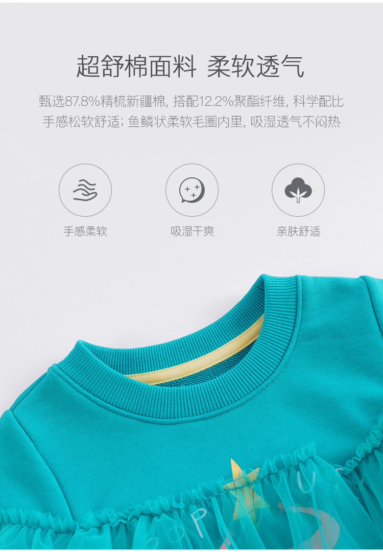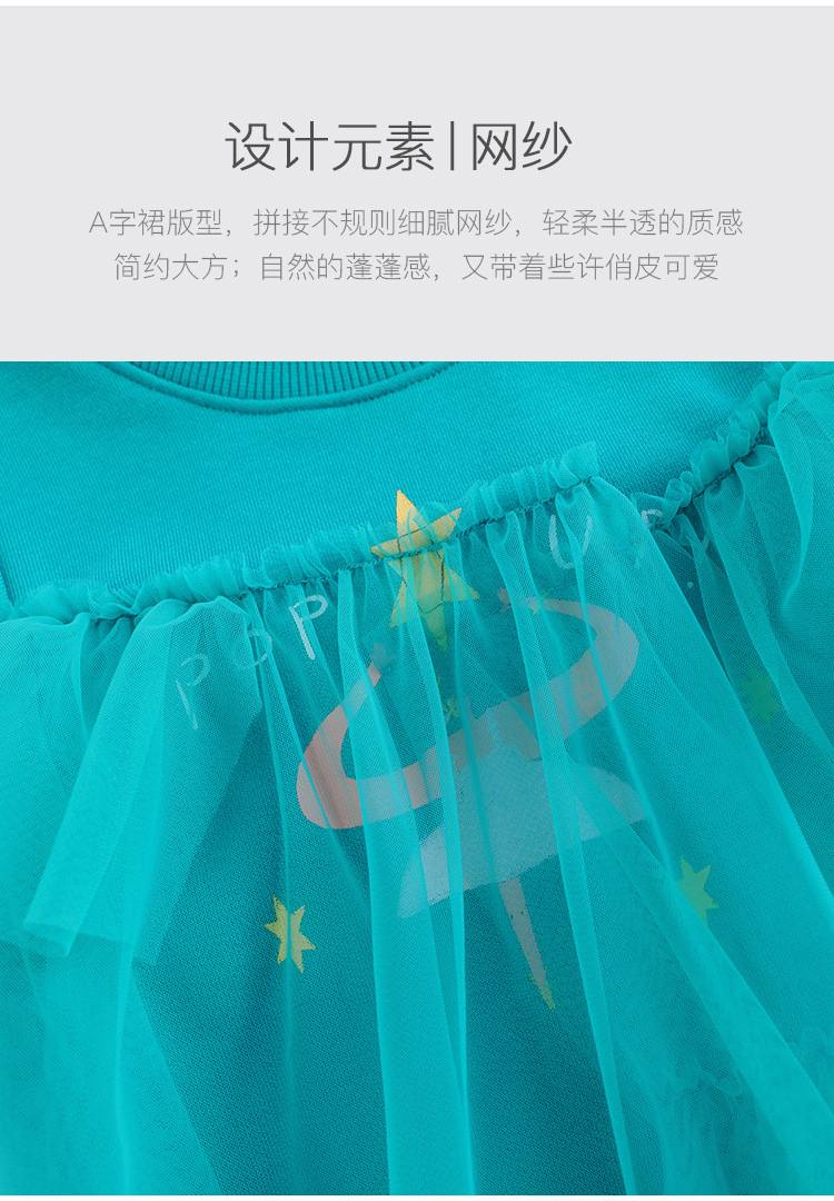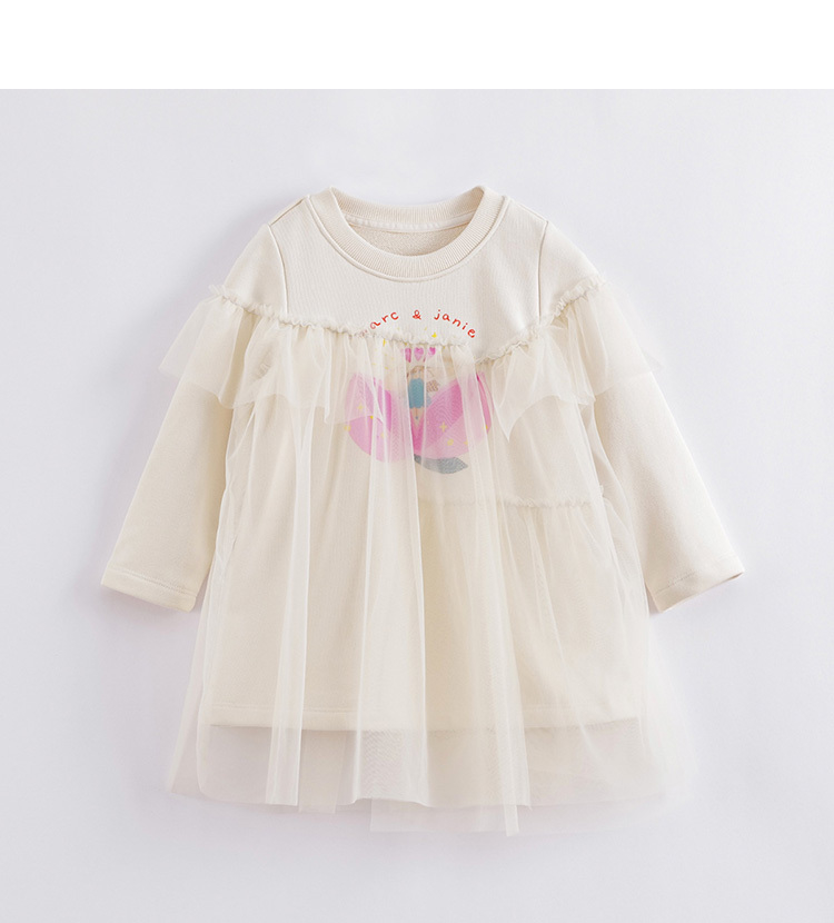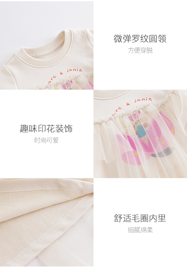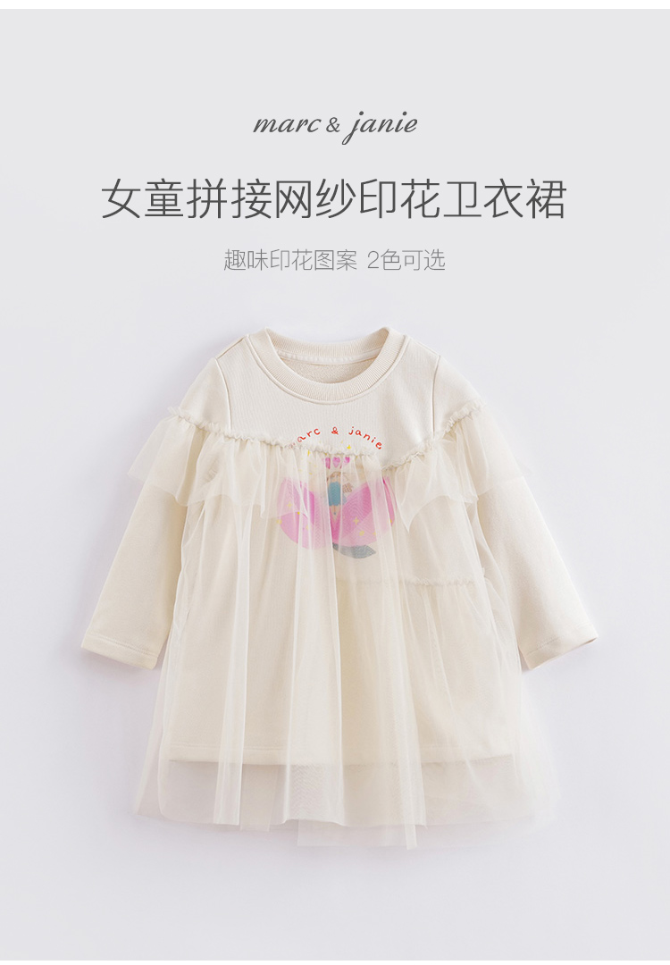 马克珍妮春装新款 女童拼接不规则网纱印花卫衣裙230132