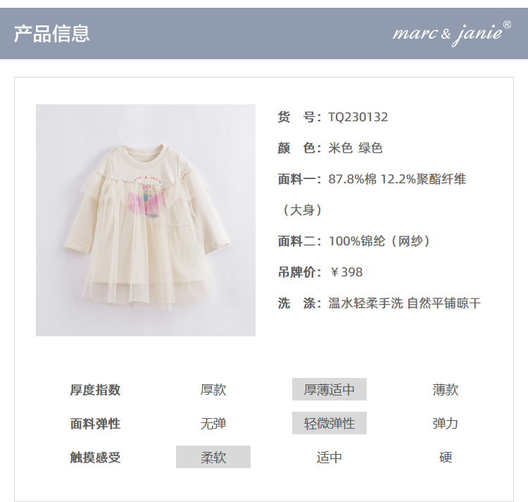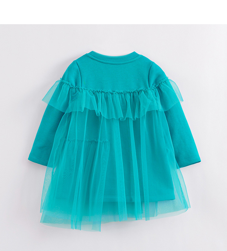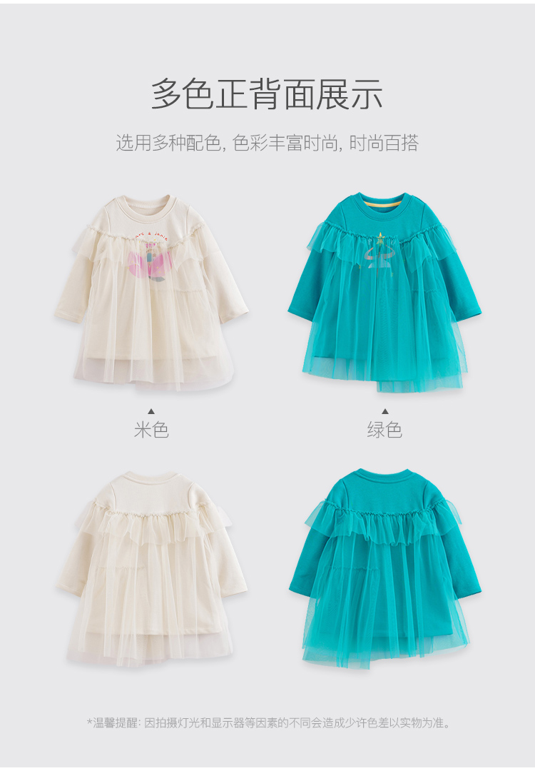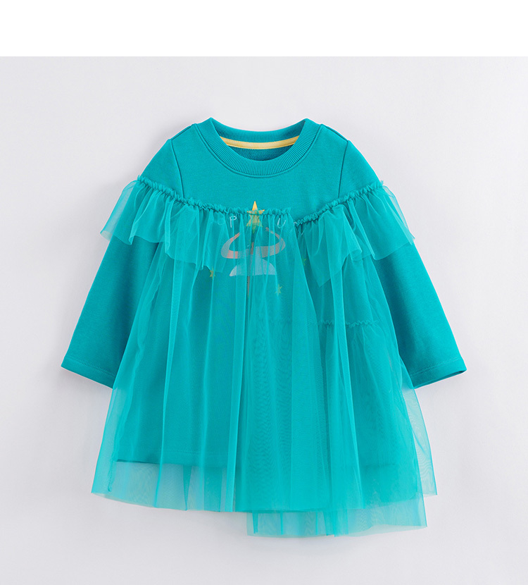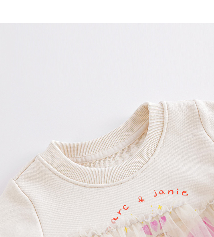 马克珍妮春装新款 女童拼接不规则网纱印花卫衣裙230132